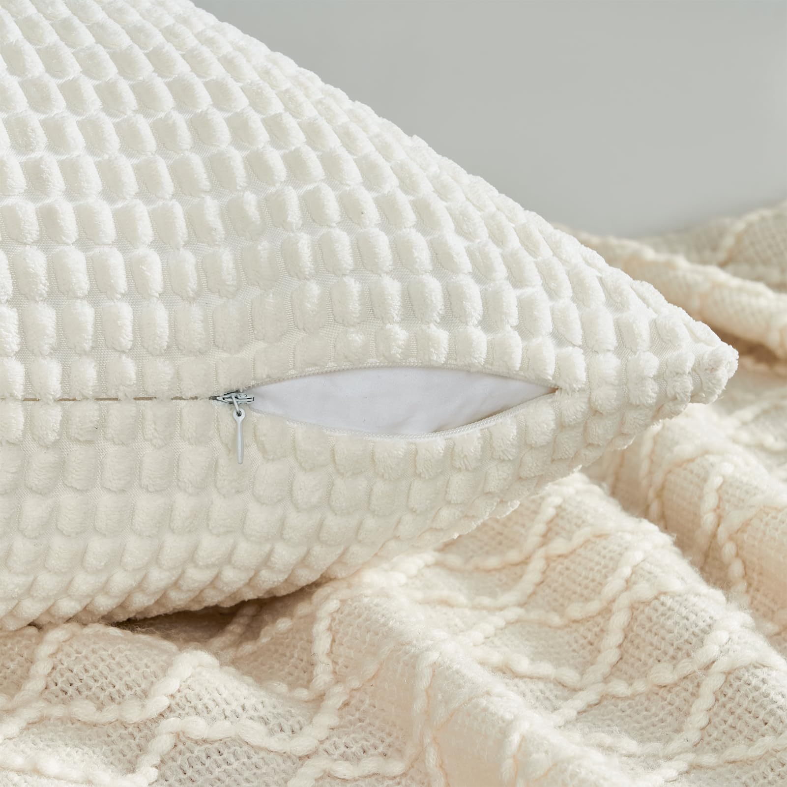 Topfinel Kissenbezug 50x50 Creme Weiss 4er Set Cord körnig Kissenbezüge Kissenhülle Dekokissenbezug Sofakissen Couchkissen für Sofa Schlafzimmer Wohnzimmer Balkon Kinder flauschig