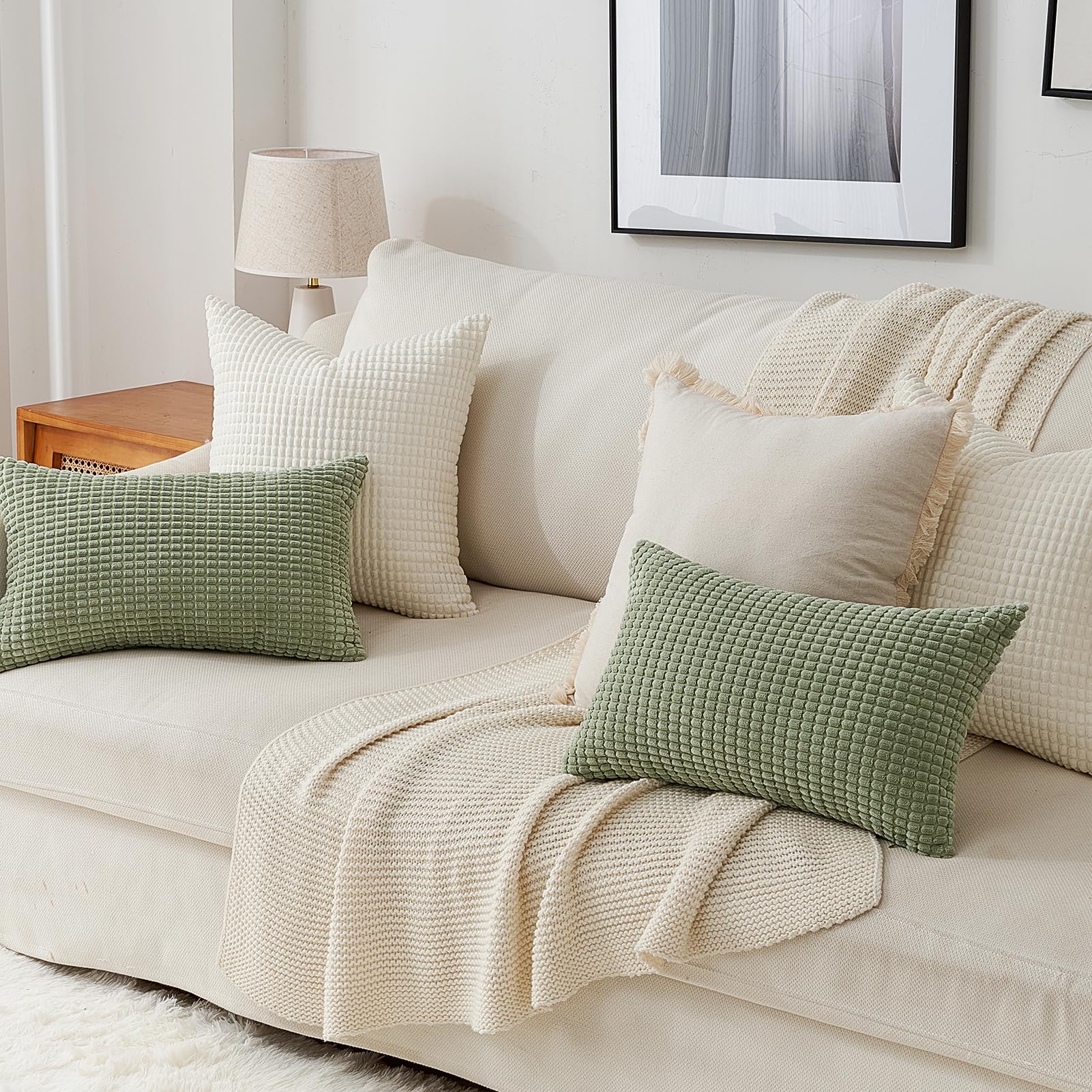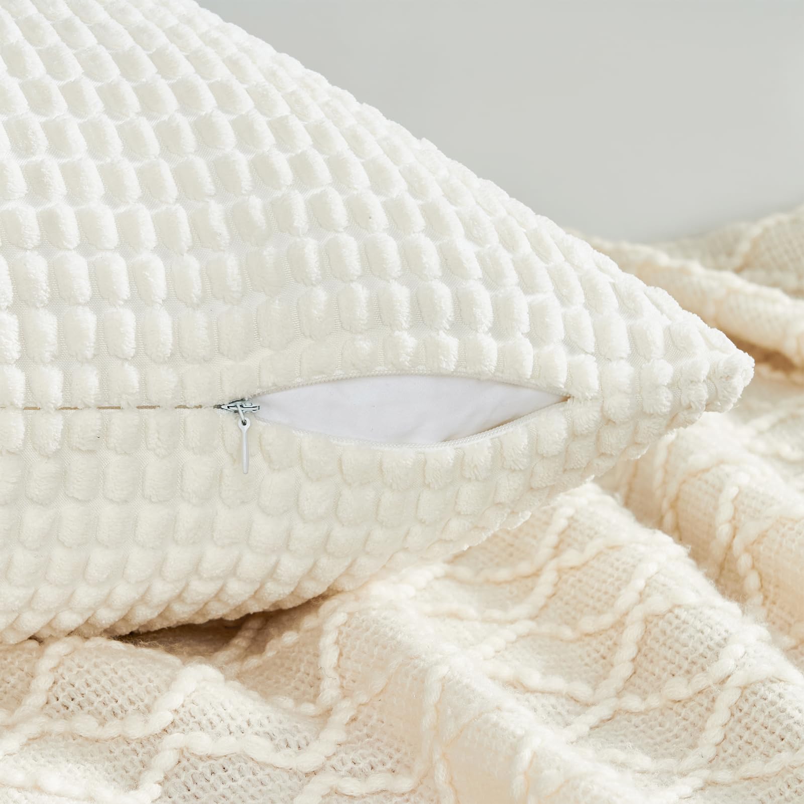 Topfinel Kissenbezug 60x60 Creme Weiss 4er Set Cord körnig Kissenbezüge Kissenhülle Dekokissenbezug Sofakissen Couchkissen für Sofa Schlafzimmer Wohnzimmer Balkon Kinder flauschig