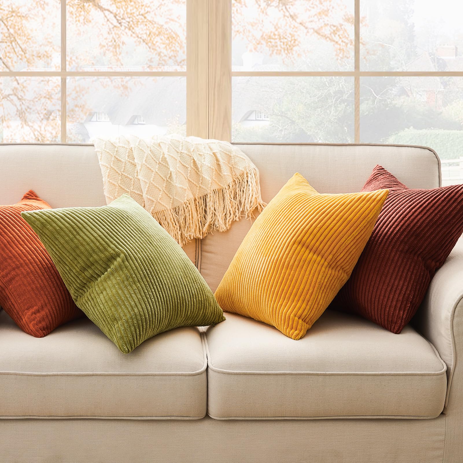 Topfinel Kissenbezug 40x40 Herbst 4er Set Cord Kissenbezüge Kissenhülle Sofakissen Dekokissen deko für Sofa Bett Wohnzimmer Kinder flauschig Orange Gelb Grün