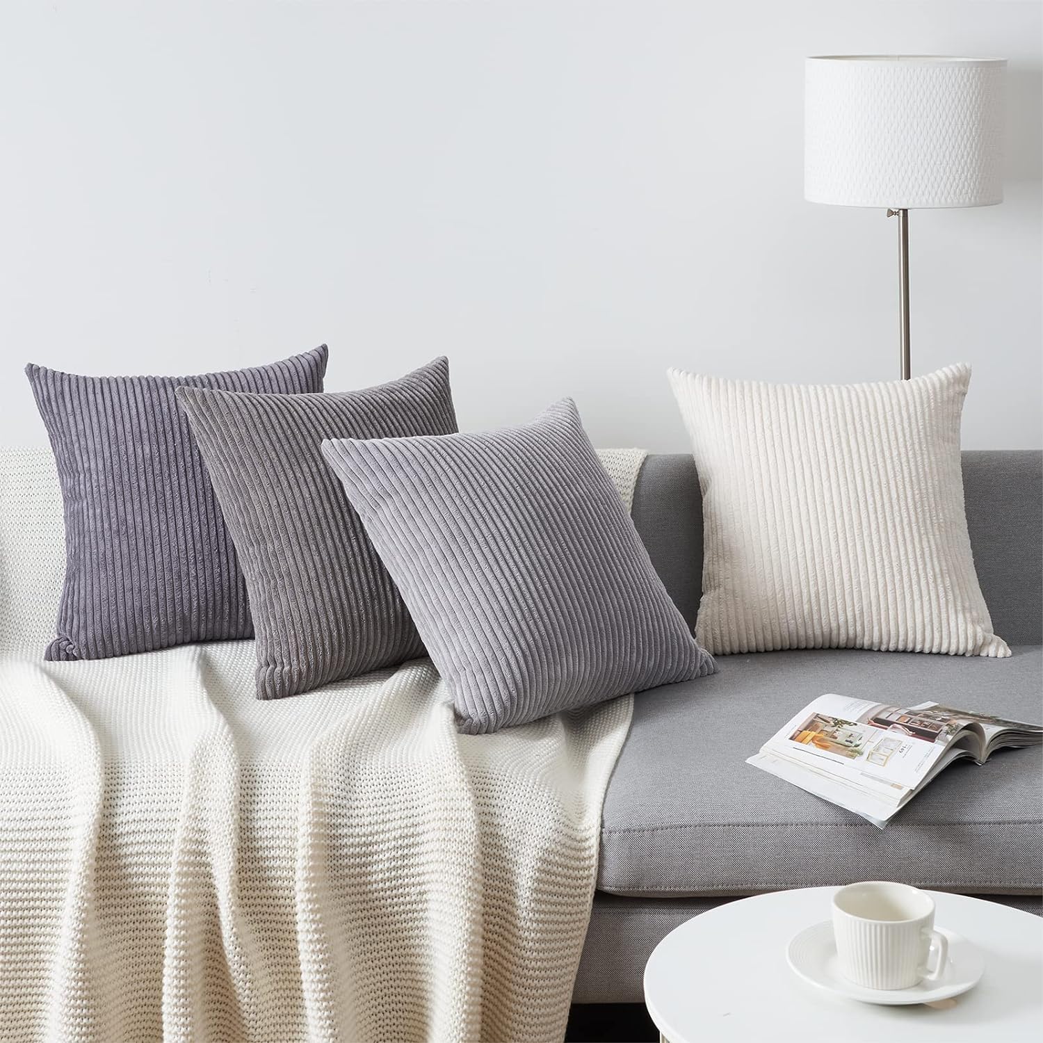 Topfinel Kissenbezug 60x60 cm Grau 4er Set Kordsamt Kissenbezüge Kissenhülle Dekokissenbezug Sofakissen Dekokissen deko für Sofa Schlafzimmer Wohnzimmer Balkon Kinder flauschig Farbverlauf