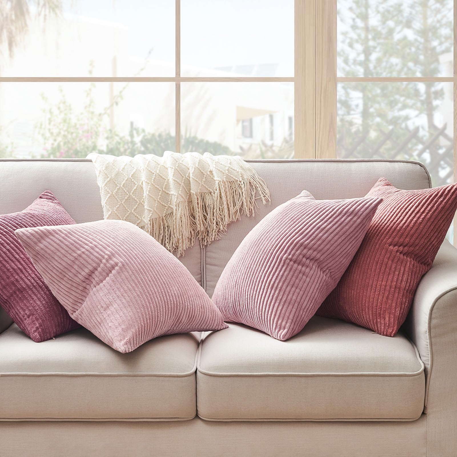 Topfinel Kissenbezug rosa 40x40 4er Set Kordsamt Kissenbezüge Kissenhülle Dekokissenbezug sofakissen dekokissen deko, Gestreift, für Sofa Schlafzimmer Wohnzimmer Balkon Kinder flauschig Farbverlauf