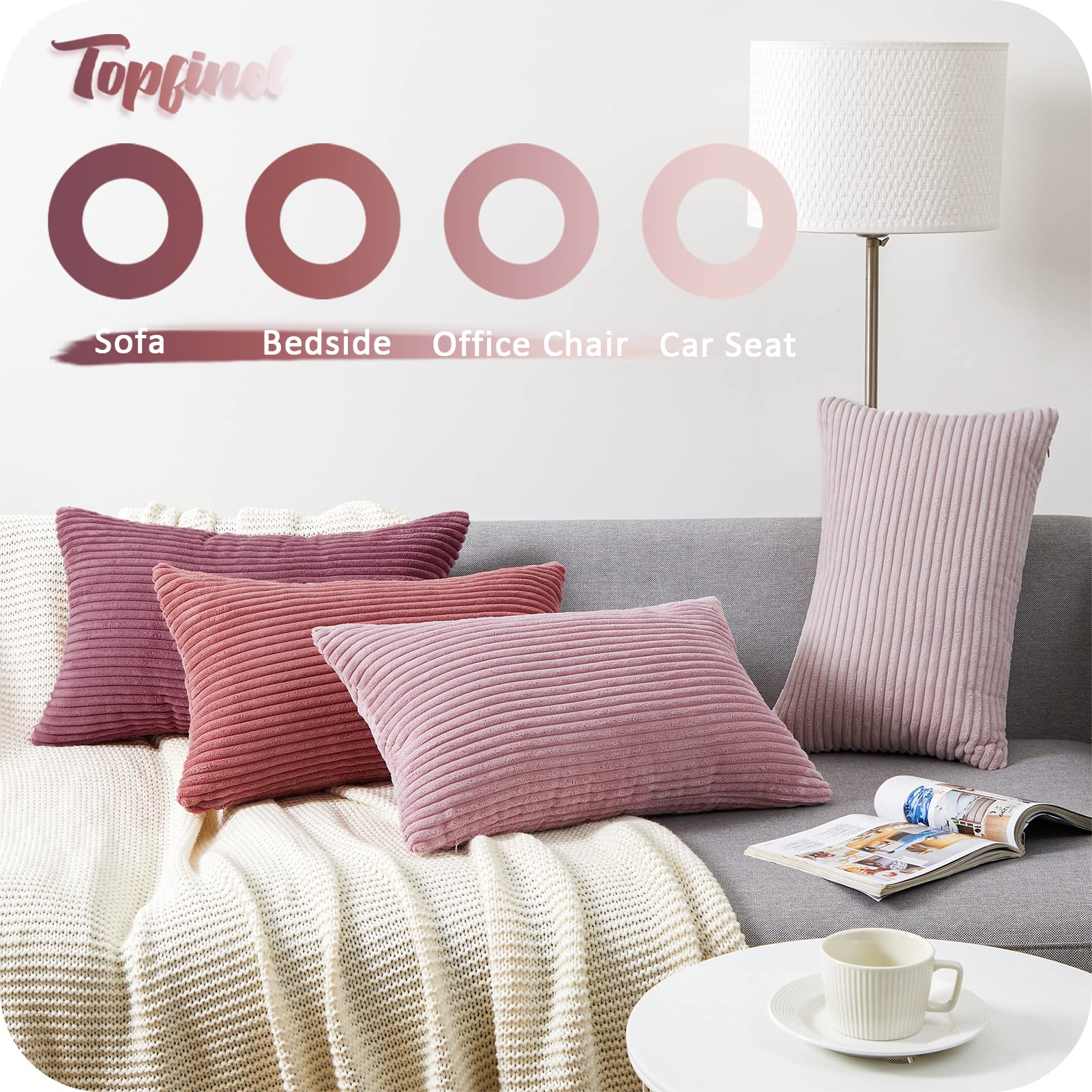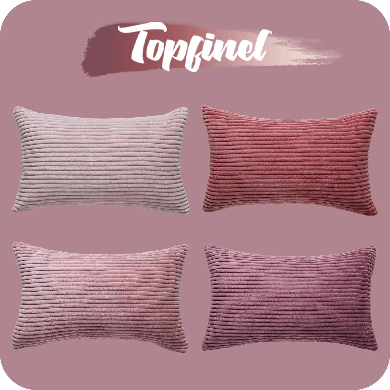 Topfinel Kissenbezug 30x50 cm rosa 4er Set Kordsamt Kissenbezüge Kissenhülle Dekokissenbezug sofakissen dekokissen deko für Sofa Schlafzimmer Wohnzimmer Balkon Kinder flauschig Farbverlauf