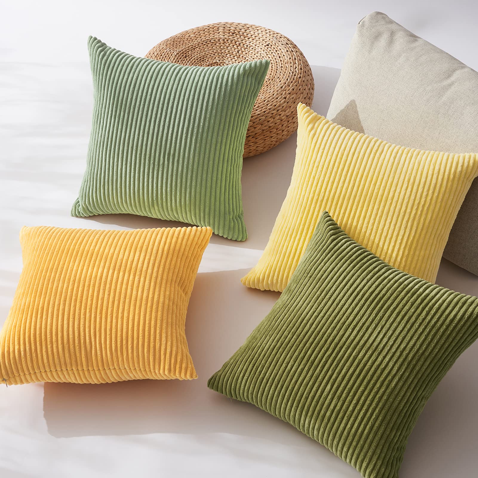 Topfinel Kissenbezug 40x40 4er Set Kordsamt Gelbgrün Kissenbezüge Kissenhülle Dekokissenbezug sofakissen dekokissen deko für Sofa Schlafzimmer Wohnzimmer Balkon Kinder flauschig Farbverlauf, Gestreift