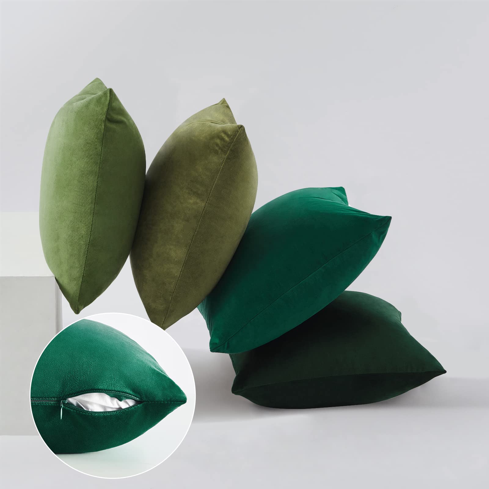 Topfinel Kissenbezug grün 50x50 Samt 4er Set Kissenbezüge Kissenhülle sofakissen dekokissen Zierkissen deko für Sofa Schlafzimmer Wohnzimmer Farbverlauf weich