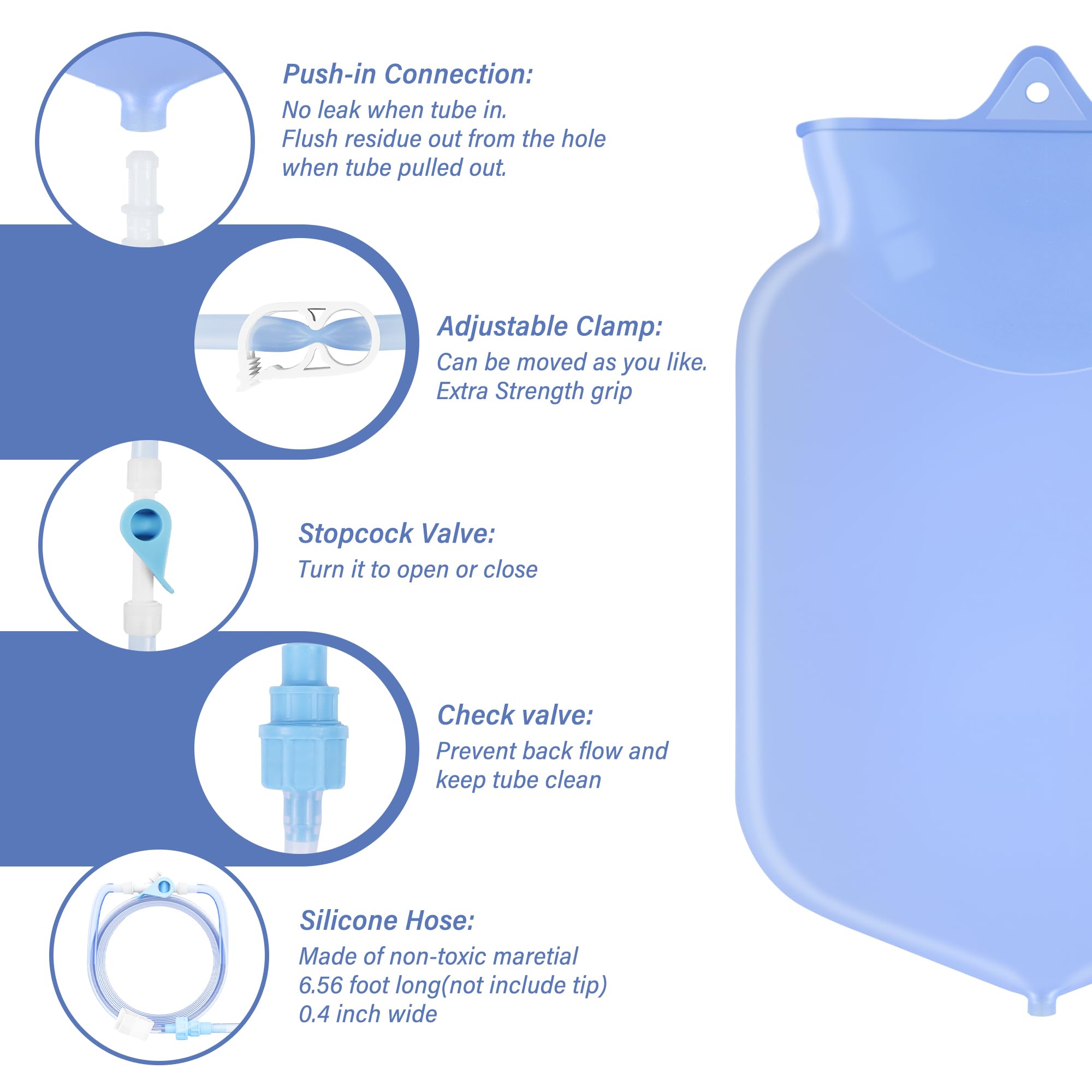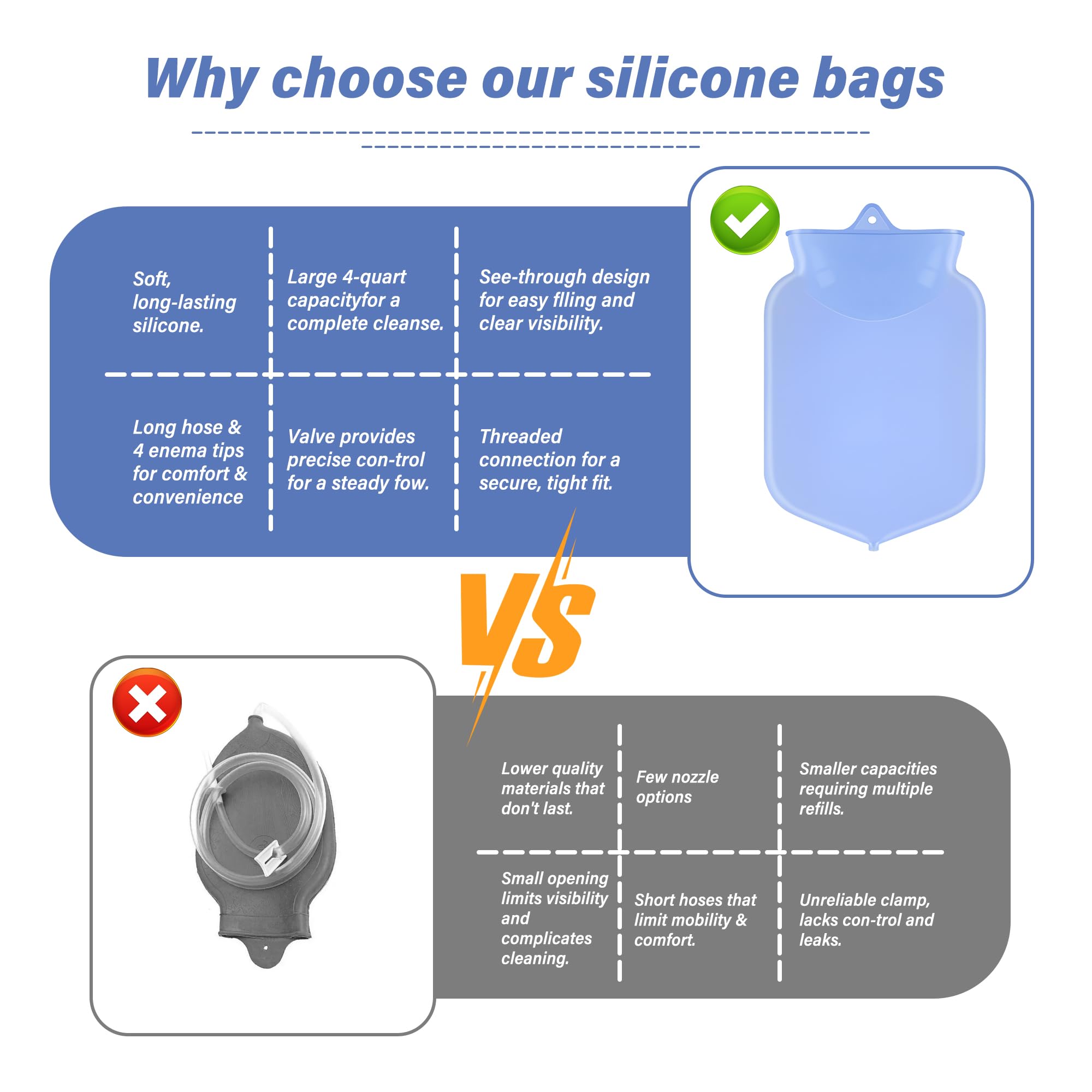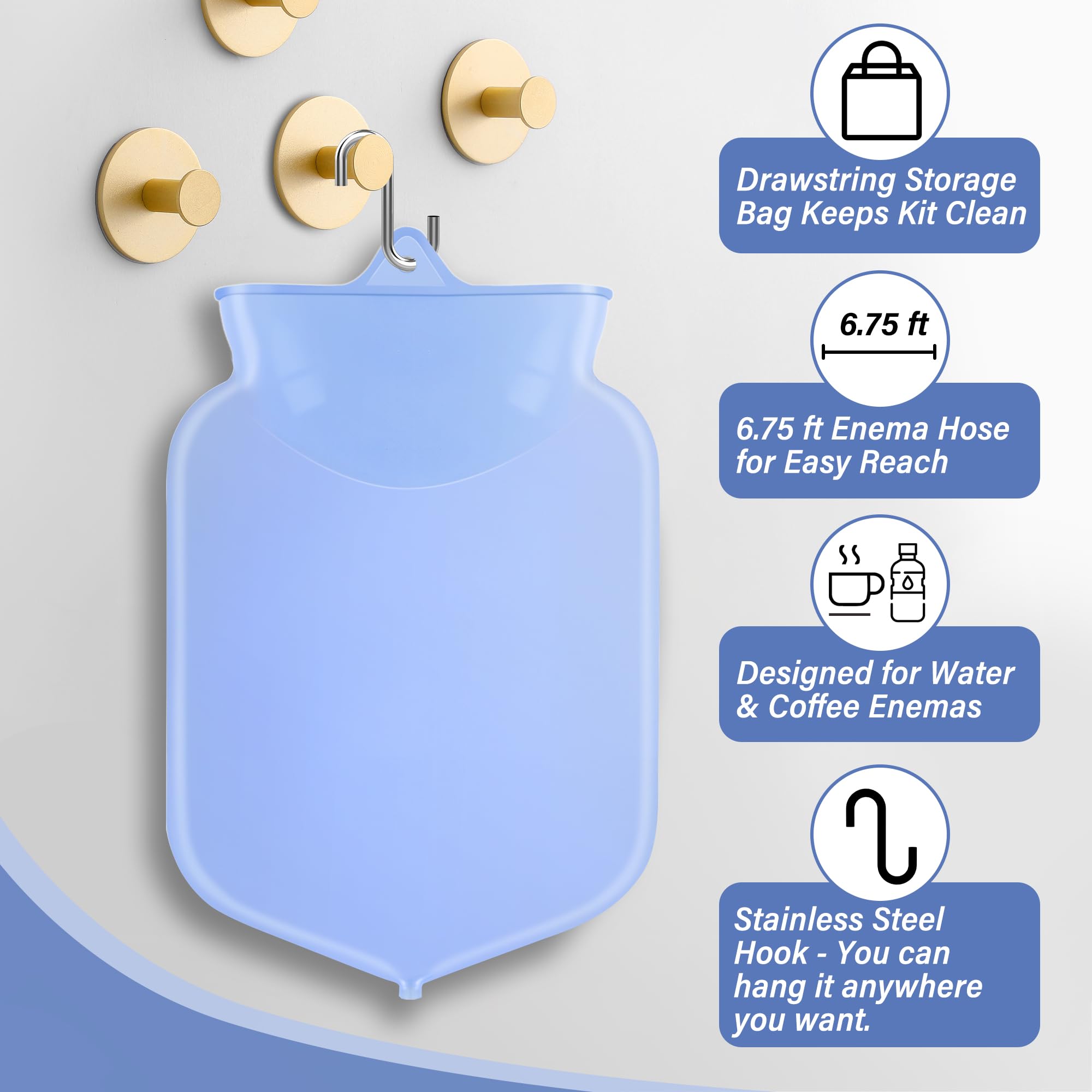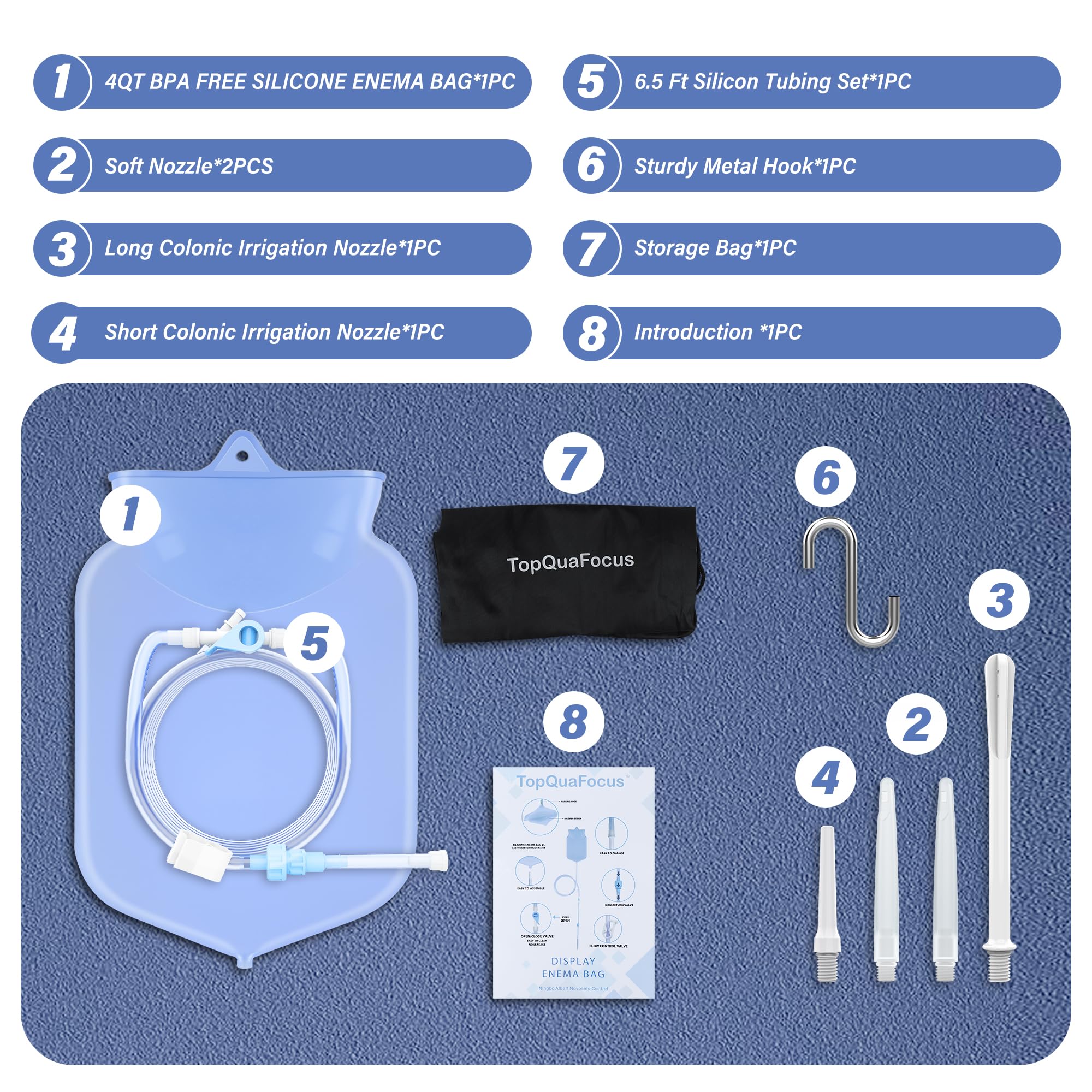 TopQuaFocus 4L grosses Klistierbeutel-Set, eindeutig ungiftiger Silikonbeutel, Kaffee-Klistierbeutel, Dickdarmreiniger, 6,5 Fuss langer Schlauch, frei von BPA und Phthalaten