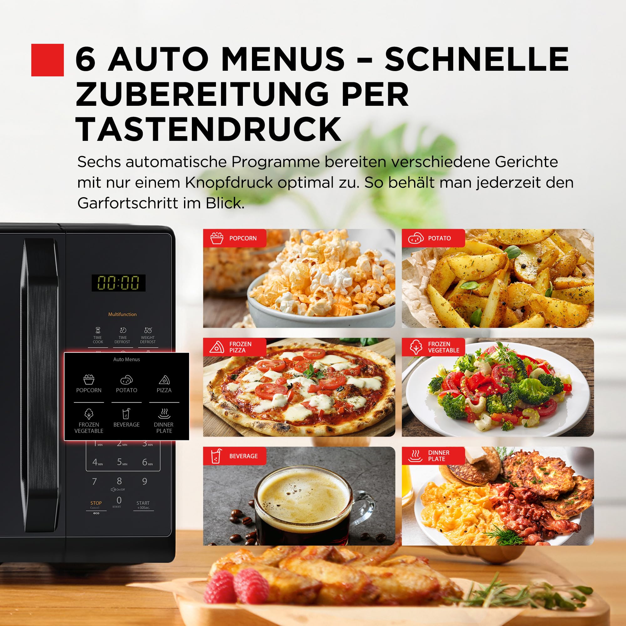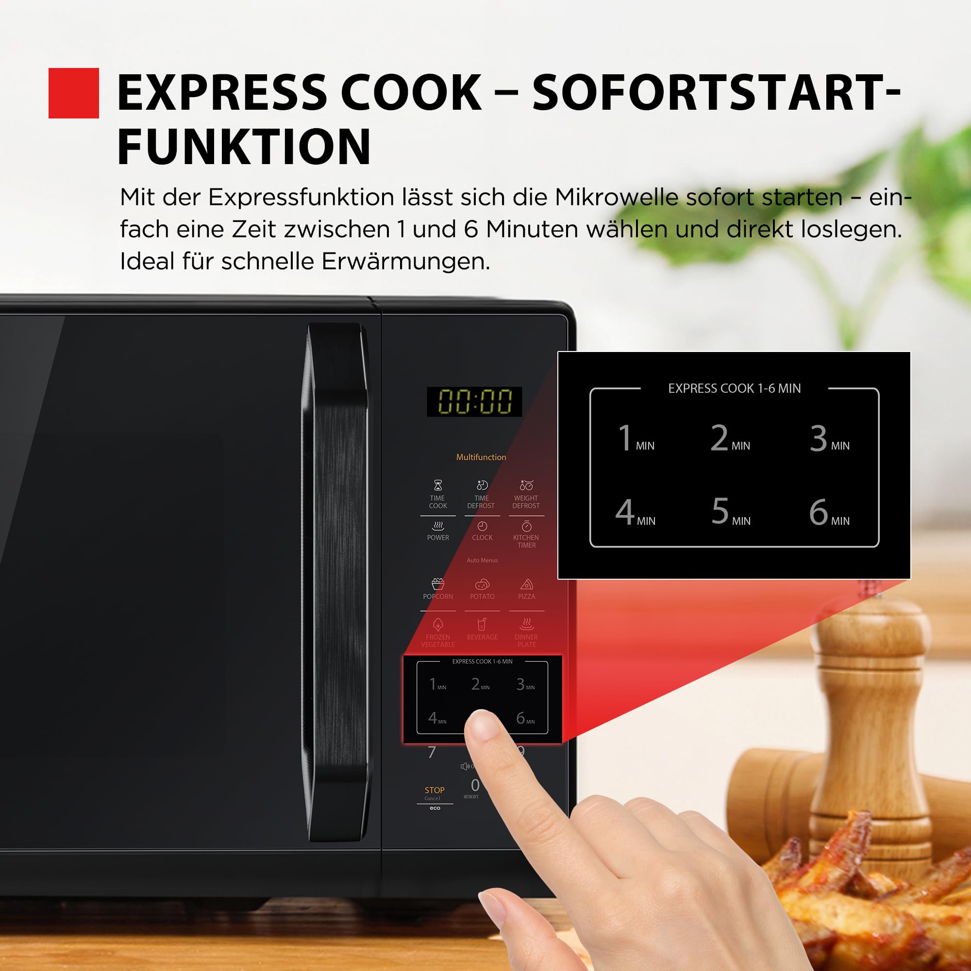 TOSHIBA Mikrowelle in spiegelndem Schwarz, 20 Liter, 800W, digitale Solo-Klein Mikrowelle mit 11 Leistungsstufen, 6 Automatikprogrammen, Express-Kochfunktion, Auftauen, Digitaldisplay, MW3-EM20PE(BM)
