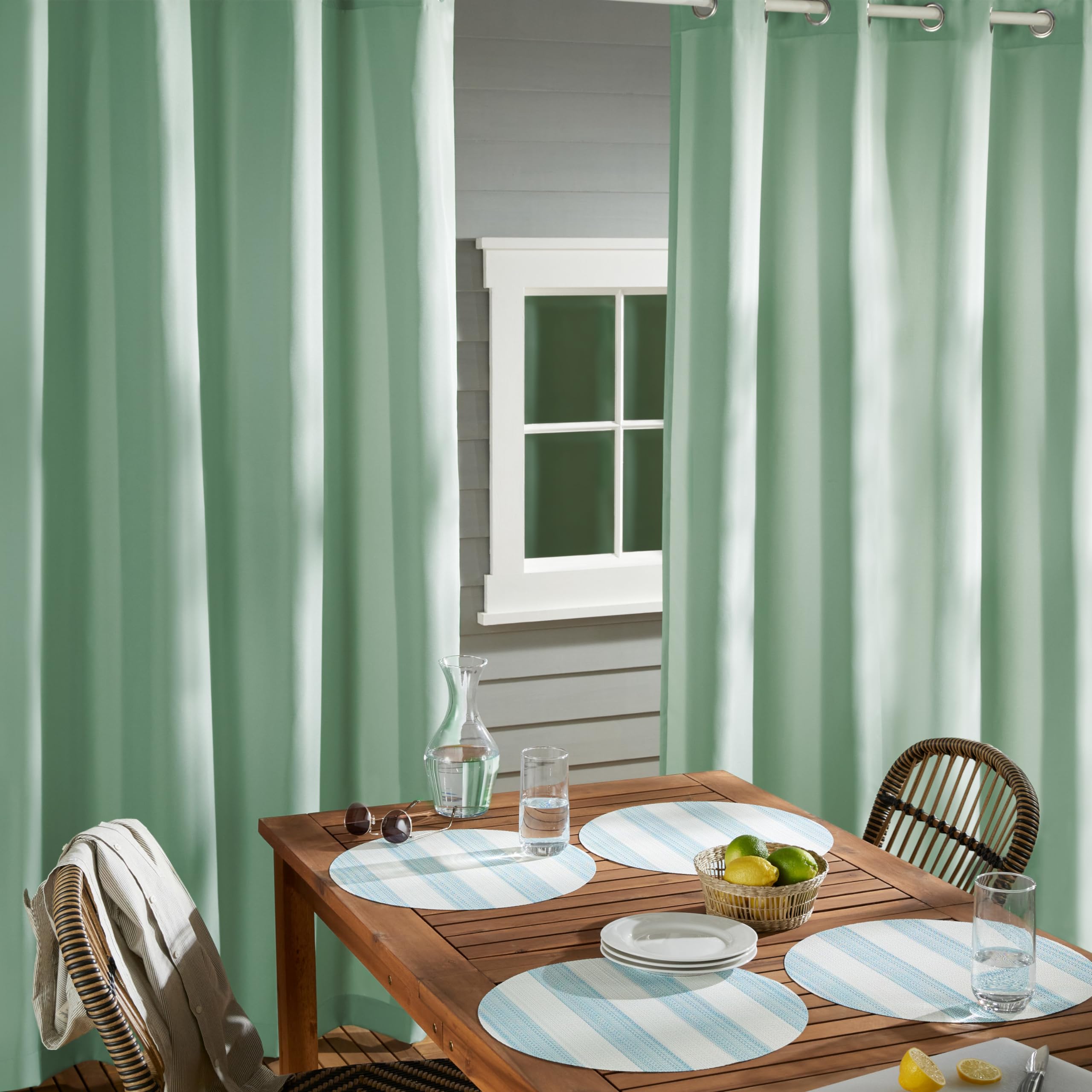 Die exklusiven Fenstervorhänge für drinnen und draussen bringen zusätzliche Mode und Stil in jeden Wohnraum im Freien. Diese Polyester-Paneele mit einem strapazierfähigen Canvas-ähnlichen Gefühl fallen schön und bieten einen UV-Schutz und sind schimmelresistent. Diese schönen Paneele sind das ultimative i-Tüpfelchen für jede Pergola, Cabana, überdachte Terrasse, Pavillon, Dock, Strandhaus oder jede Erweiterung Ihres Hauses. Der Vorhang für den Innen- und Aussenbereich besteht aus wunderschönen silberfarbenen Edelstahlösen, die für Gardinenstangen Ihrer Wahl mit einem Durchmesser von bis zu 4,8 cm geeignet sind. Beeindrucken Sie Ihre Freunde, Familie und Gäste mit diesen Fenstervorhängen an jedem Fenster.