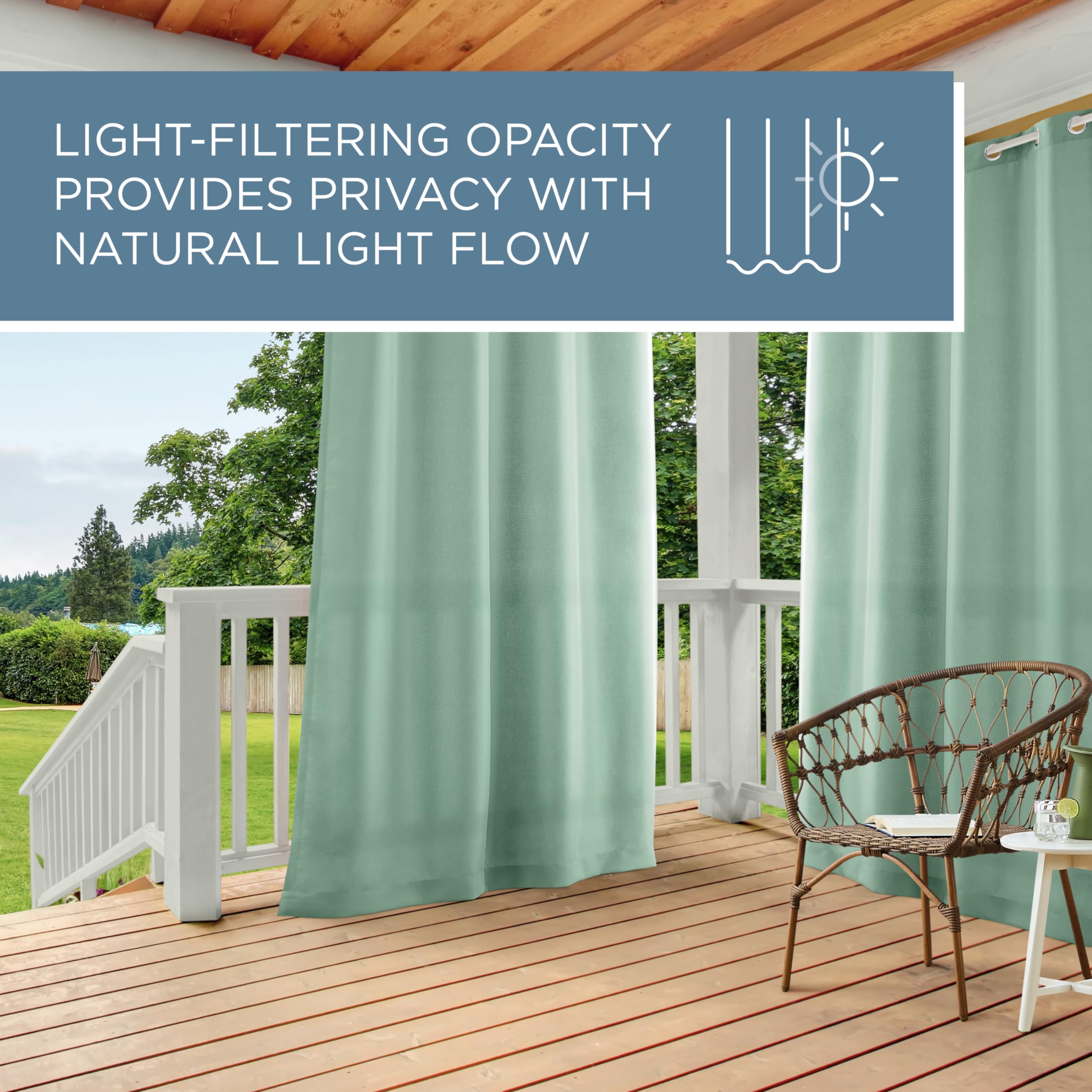 Die exklusiven Fenstervorhänge für drinnen und draussen bringen zusätzliche Mode und Stil in jeden Wohnraum im Freien. Diese Polyester-Paneele mit einem strapazierfähigen Canvas-ähnlichen Gefühl fallen schön und bieten einen UV-Schutz und sind schimmelresistent. Diese schönen Paneele sind das ultimative i-Tüpfelchen für jede Pergola, Cabana, überdachte Terrasse, Pavillon, Dock, Strandhaus oder jede Erweiterung Ihres Hauses. Der Vorhang für den Innen- und Aussenbereich besteht aus wunderschönen silberfarbenen Edelstahlösen, die für Gardinenstangen Ihrer Wahl mit einem Durchmesser von bis zu 4,8 cm geeignet sind. Beeindrucken Sie Ihre Freunde, Familie und Gäste mit diesen Fenstervorhängen an jedem Fenster.