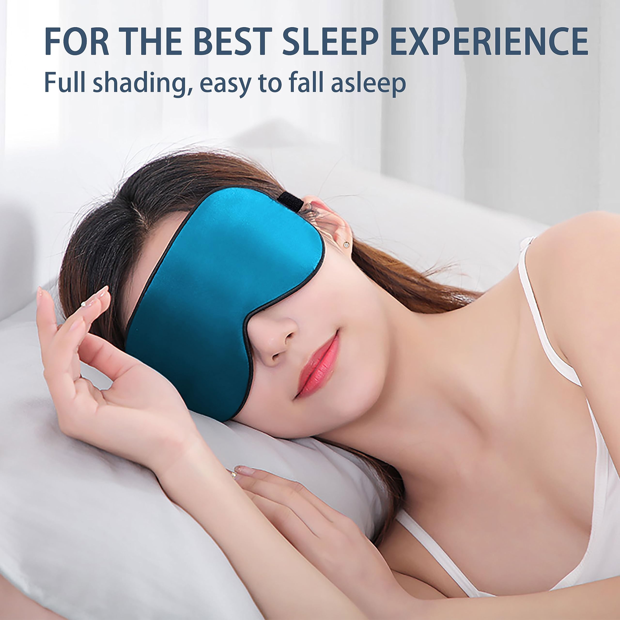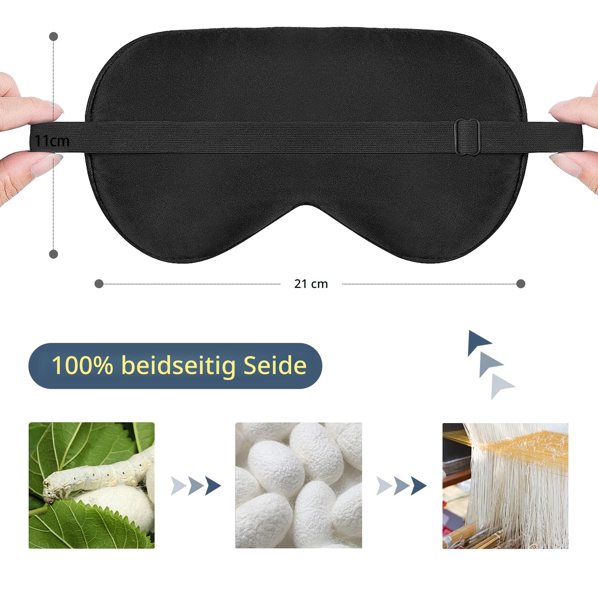 townssilk 2 x Schlafmaske aus 100% Seide mit verstellbarem Band, bequeme und superweiche Augenmaske, 1 x Schwarz und 1 x Blau (Peacockblue)