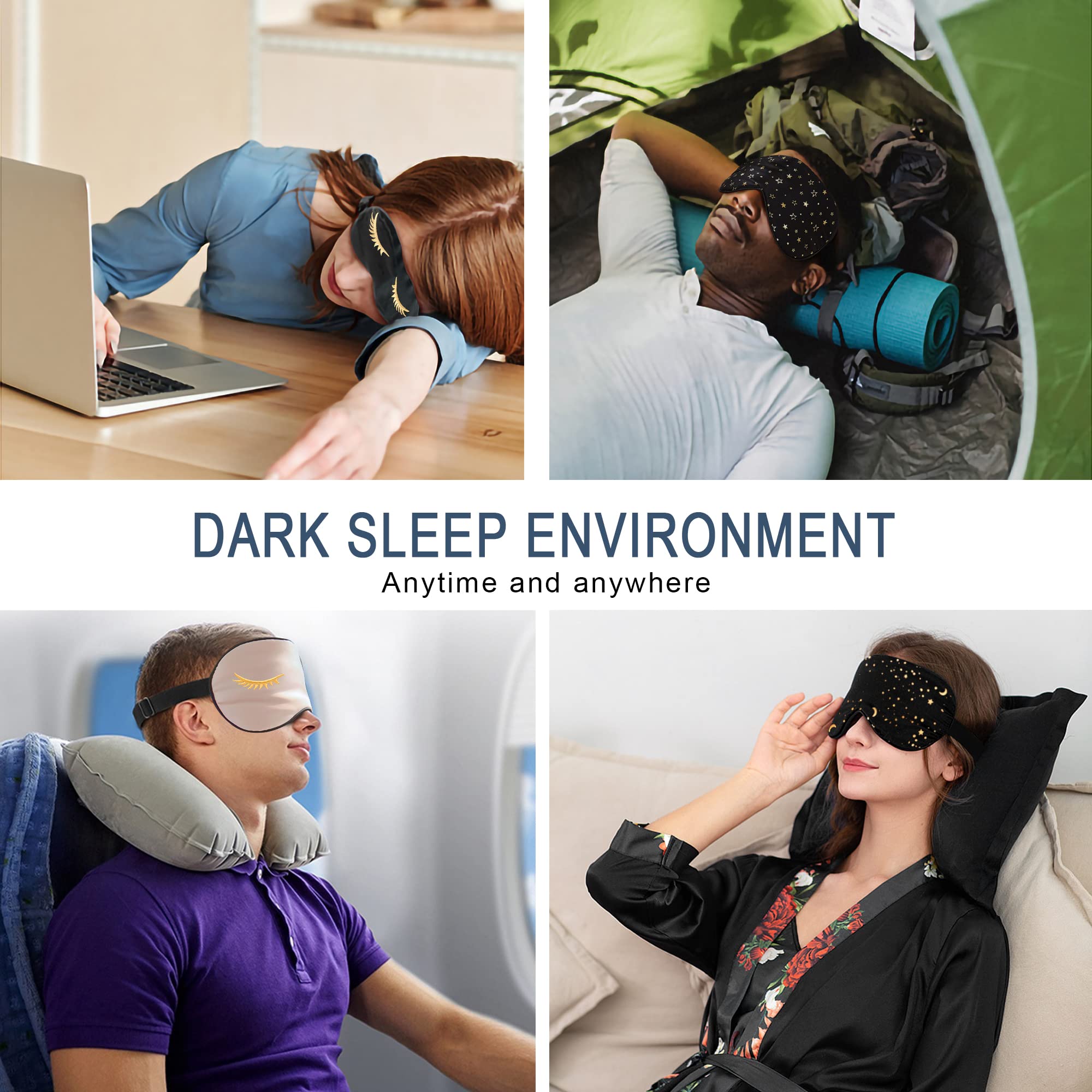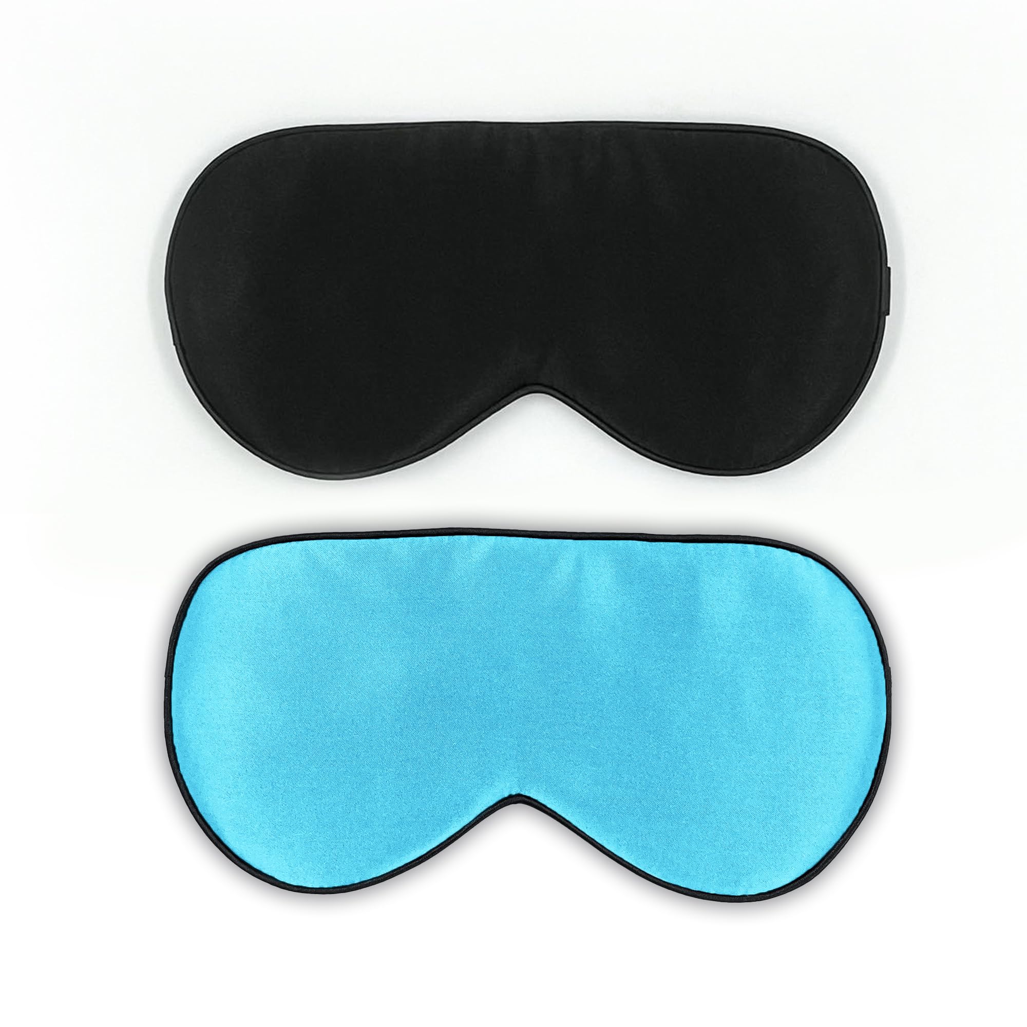 townssilk 2 x Schlafmaske aus 100% Seide mit verstellbarem Band, bequeme und superweiche Augenmaske, 1 x schwarz und 1 x iceblue