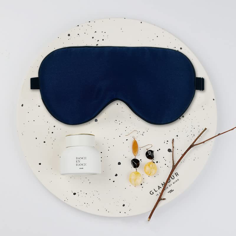 townssilk 2 x Schlafmaske aus 100% Seide mit verstellbarem Band, bequeme und superweiche Augenmaske, 1 x Schwarz und 1 x Marineblau