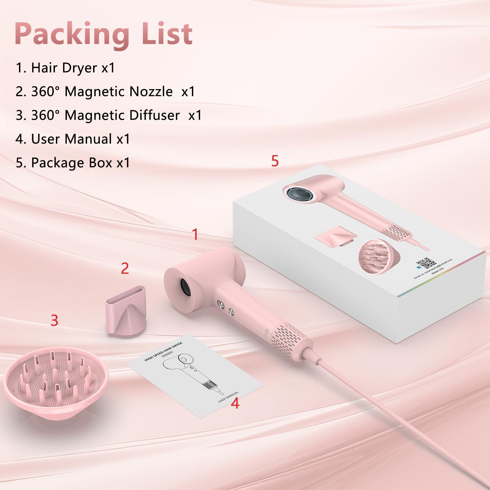 TQQ Haartrockner, 200 Million Negativ Ionen Fön, 110.000 U/min Bürstenloser Motor Schnelles Trocknen Föhn, 57dB Geräuscharm Haarföhn für Zuhause, Reisen