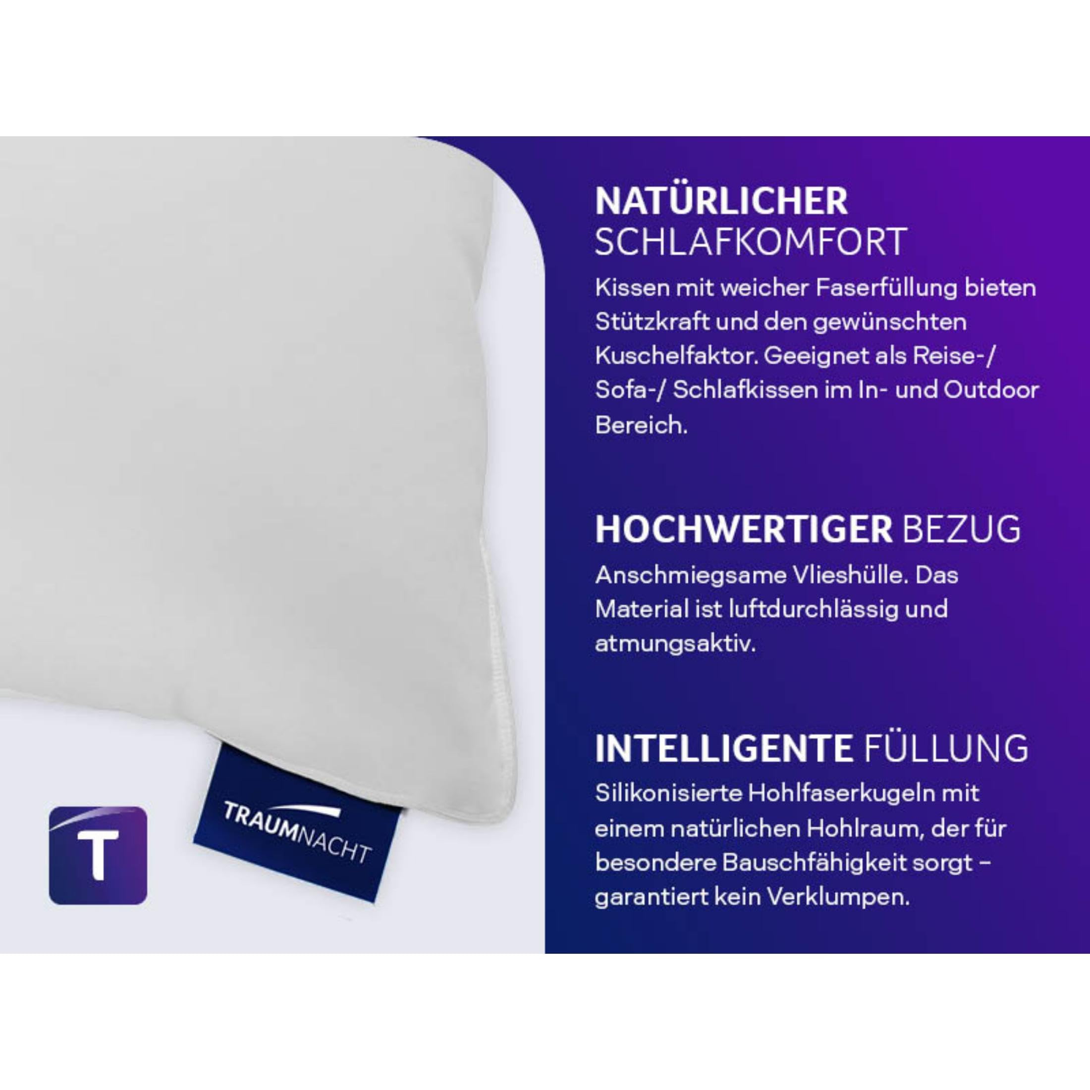 Traumnacht 4er Set Sofakissen, Kopfkissen, mit Faserfüllung und Vlieshülle, 50 x 50 cm, weiss, Öko-Tex zertifiziert, produziert nach deutschem Qualitätsstandard