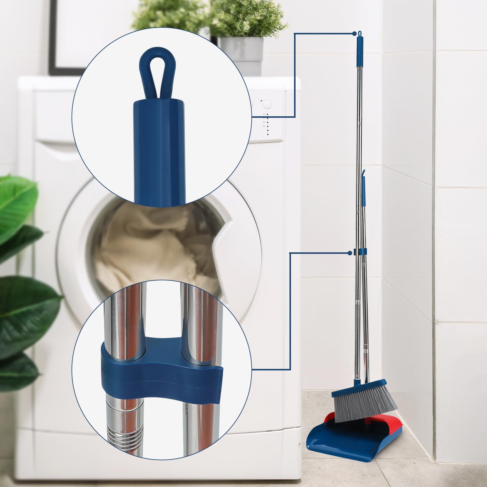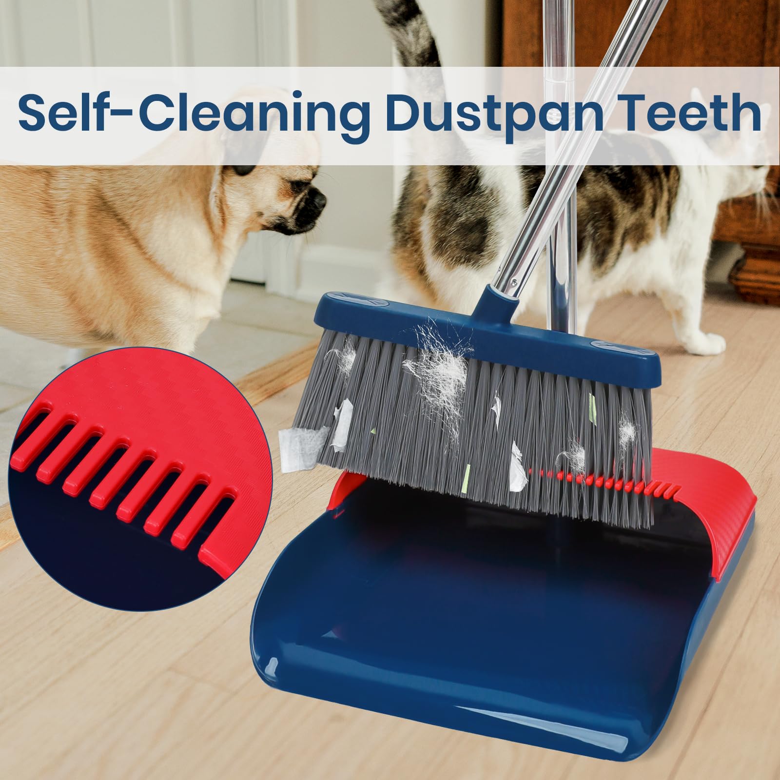 TreeLen Stehende Kehrschaufel- und Besen-Set, 50” Langer Griffbesen mit Kehrschaufel, 20° angewinkelt für ergonomisches Kehren im Innenbereich von Haus und Büro, White