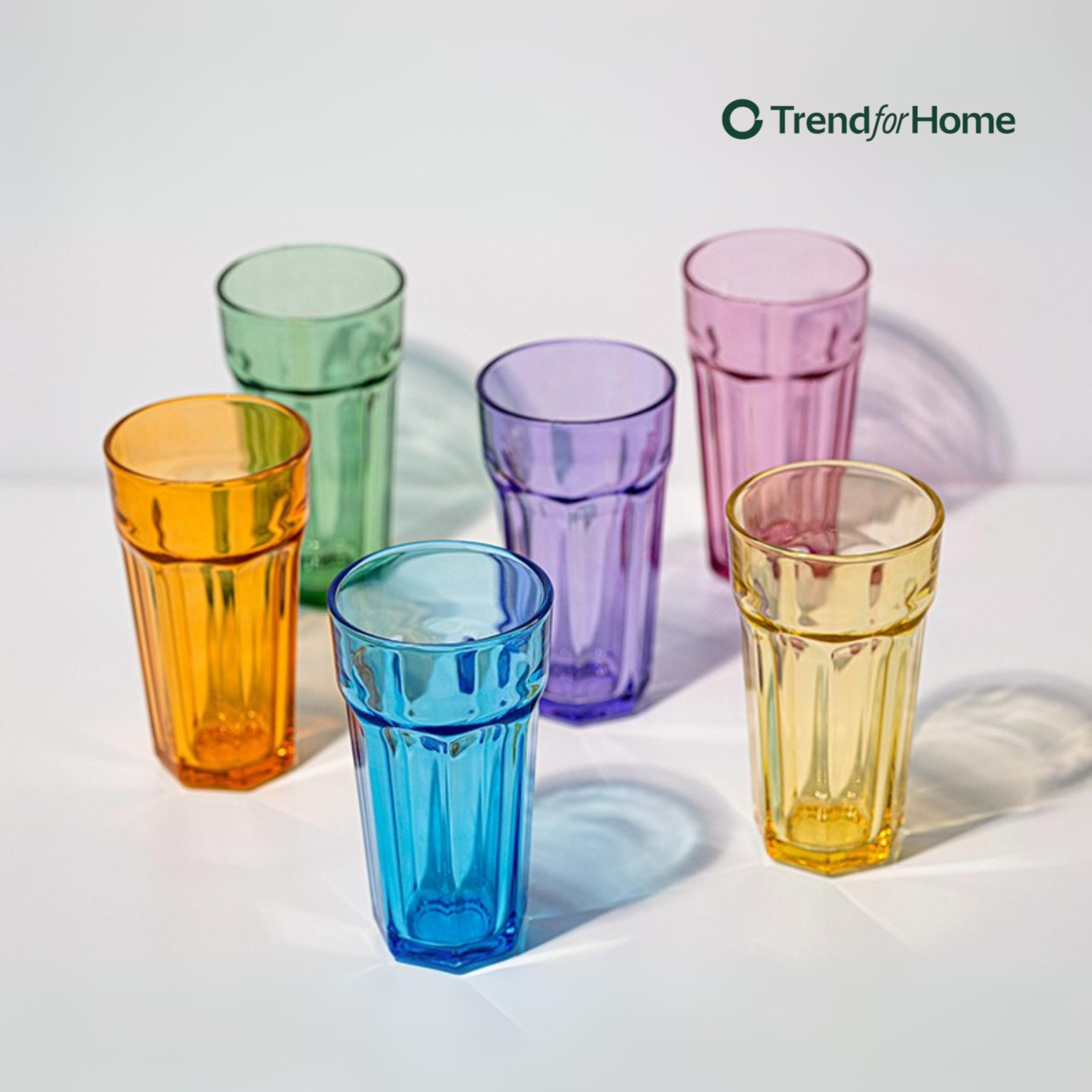 TREND FOR HOME -Gigi Rainbow Blast mix Grosse Trinkgläser700 ml Cocktailgläser 6er Set Eiskaffeegläser Grosse Longdrinkgläser XXL Bunte Gläser Limonadengläser Saftgläser Smoothiegläser