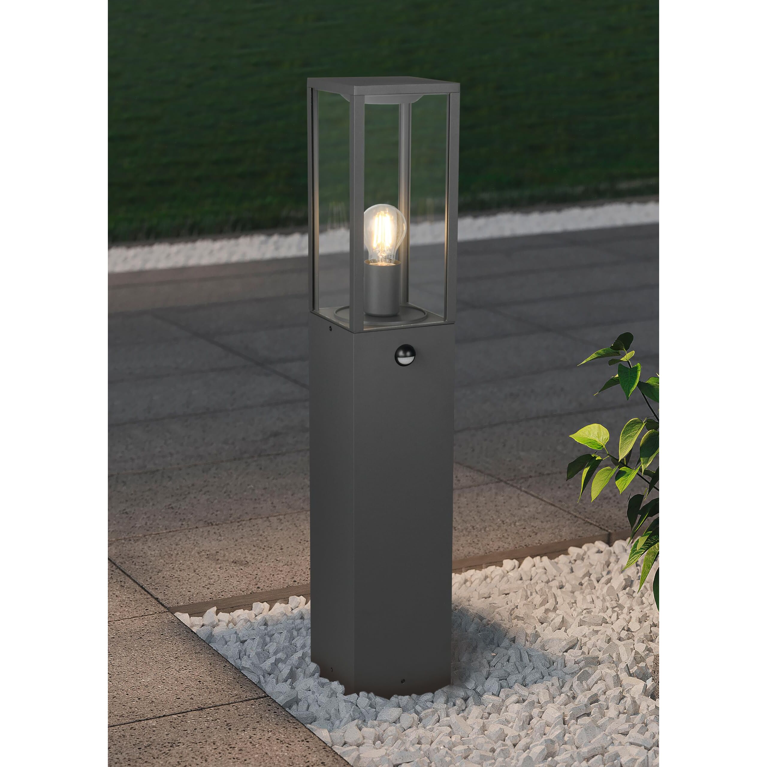 Trio Leuchten Aussen Wegeleuchte Garonne 401869142, Aluminium Druckguss Anthrazit, Glas klar, exkl. 1x E27, Bewegungssensor