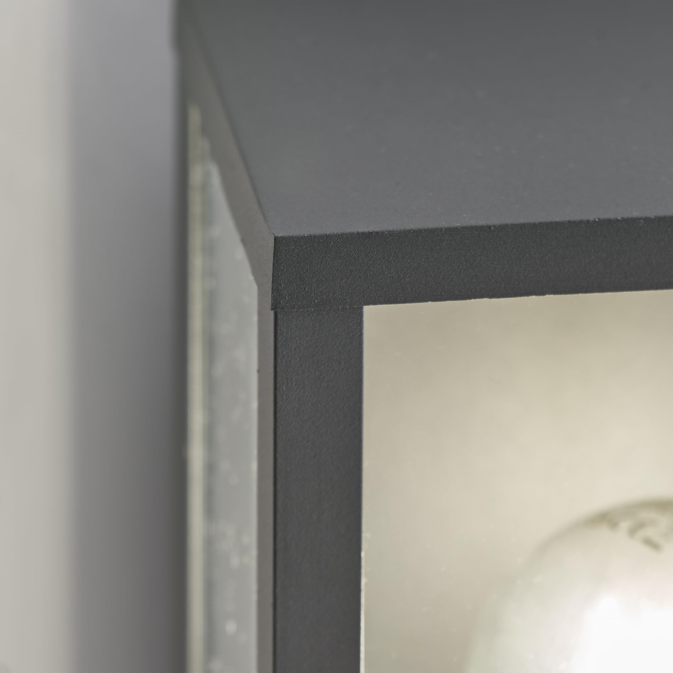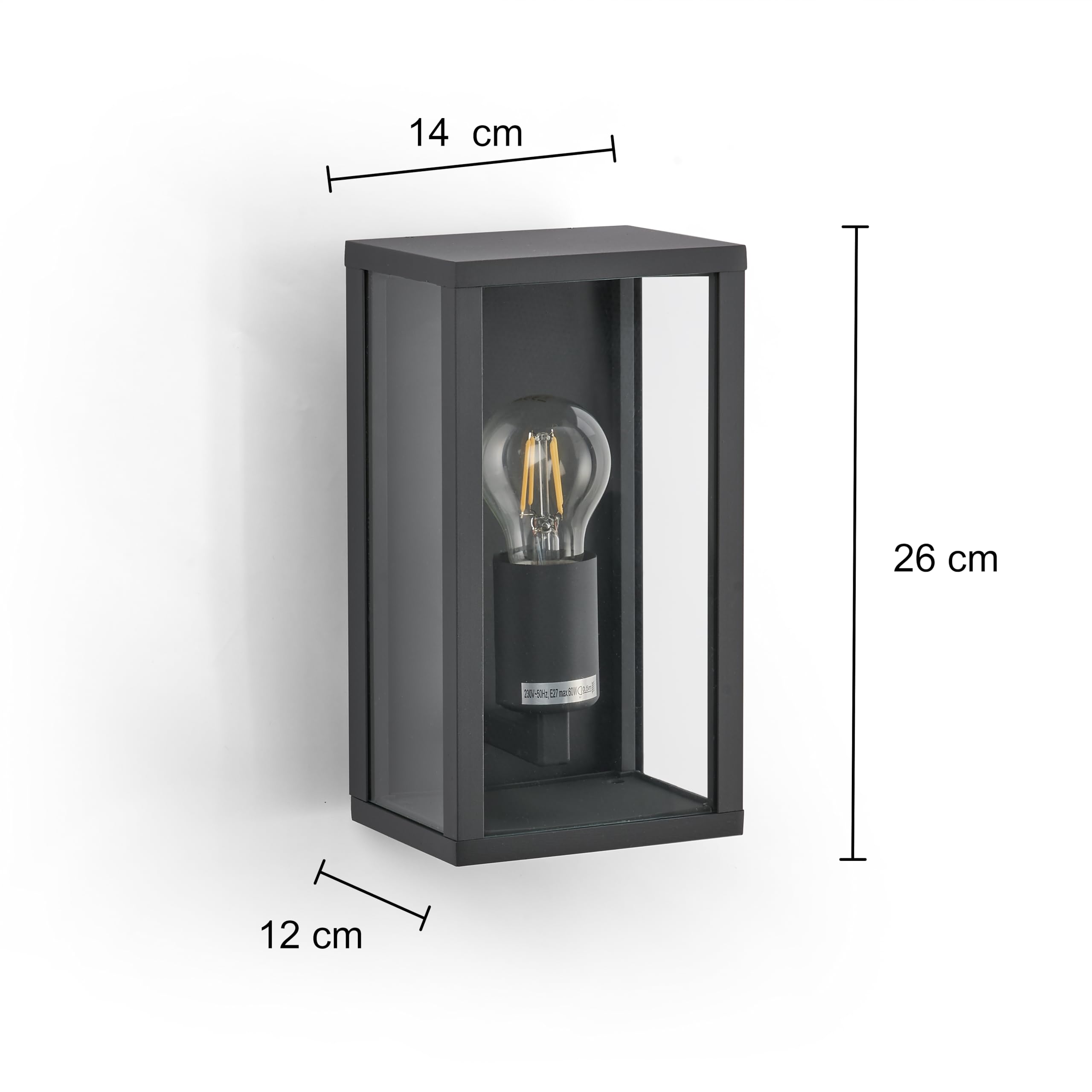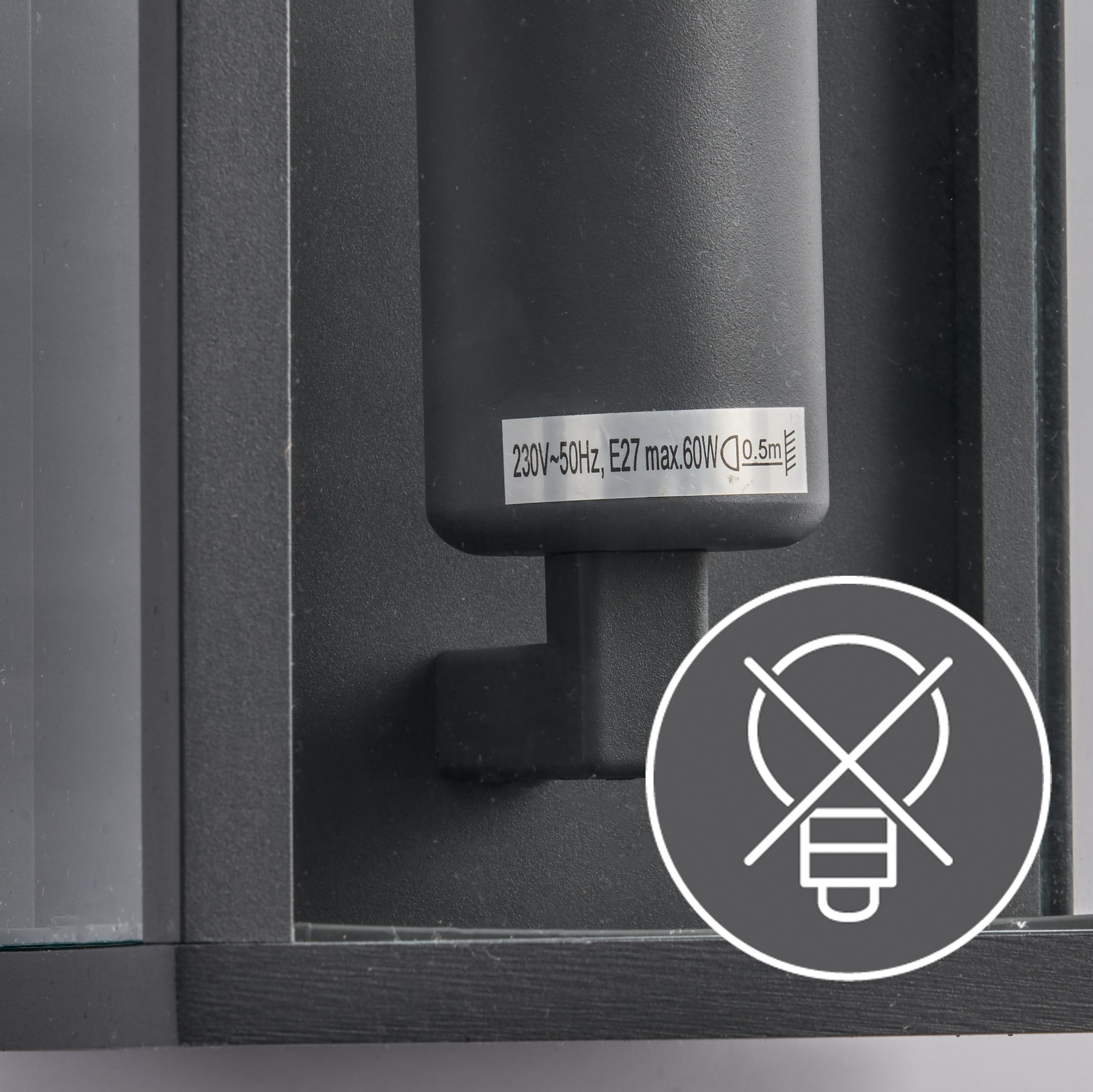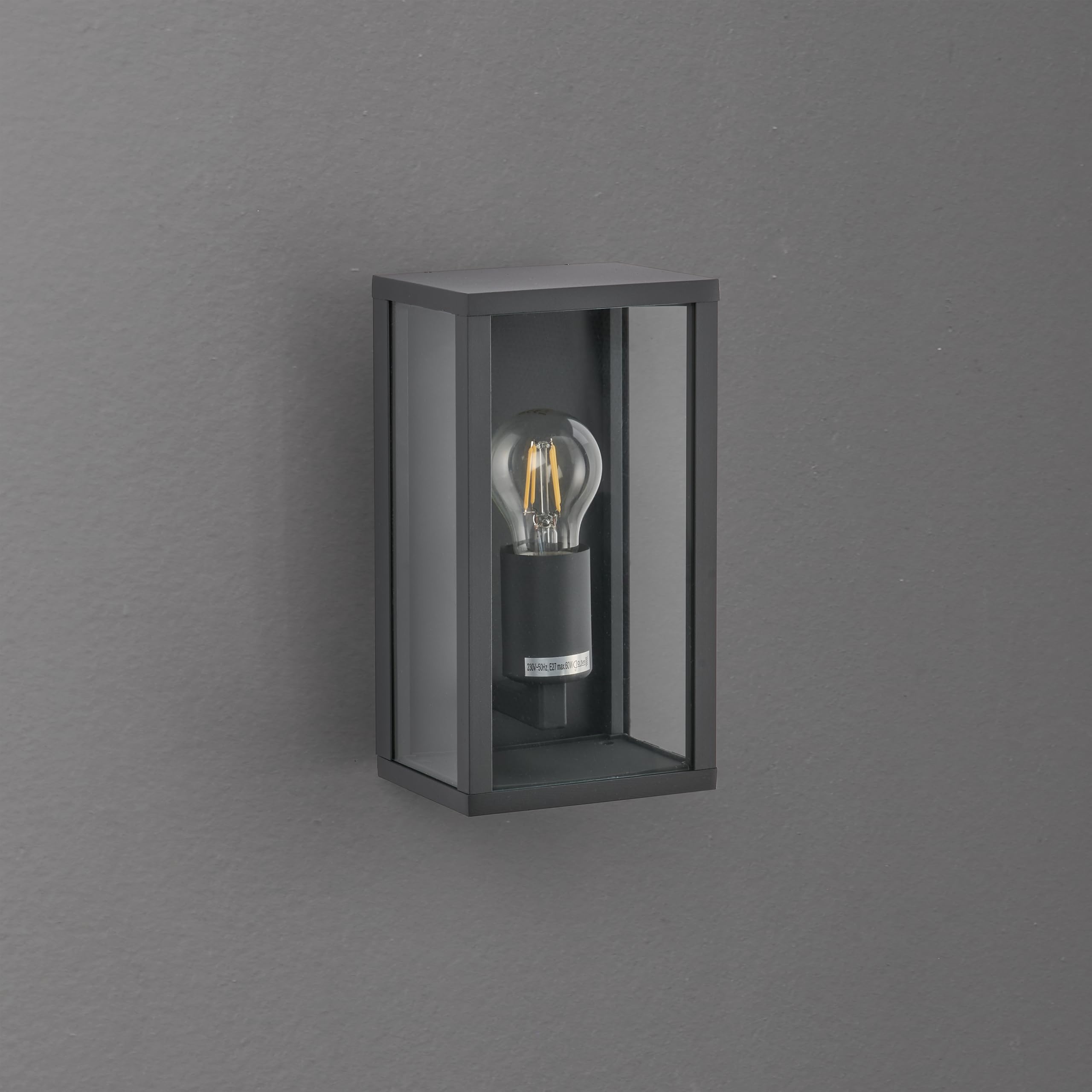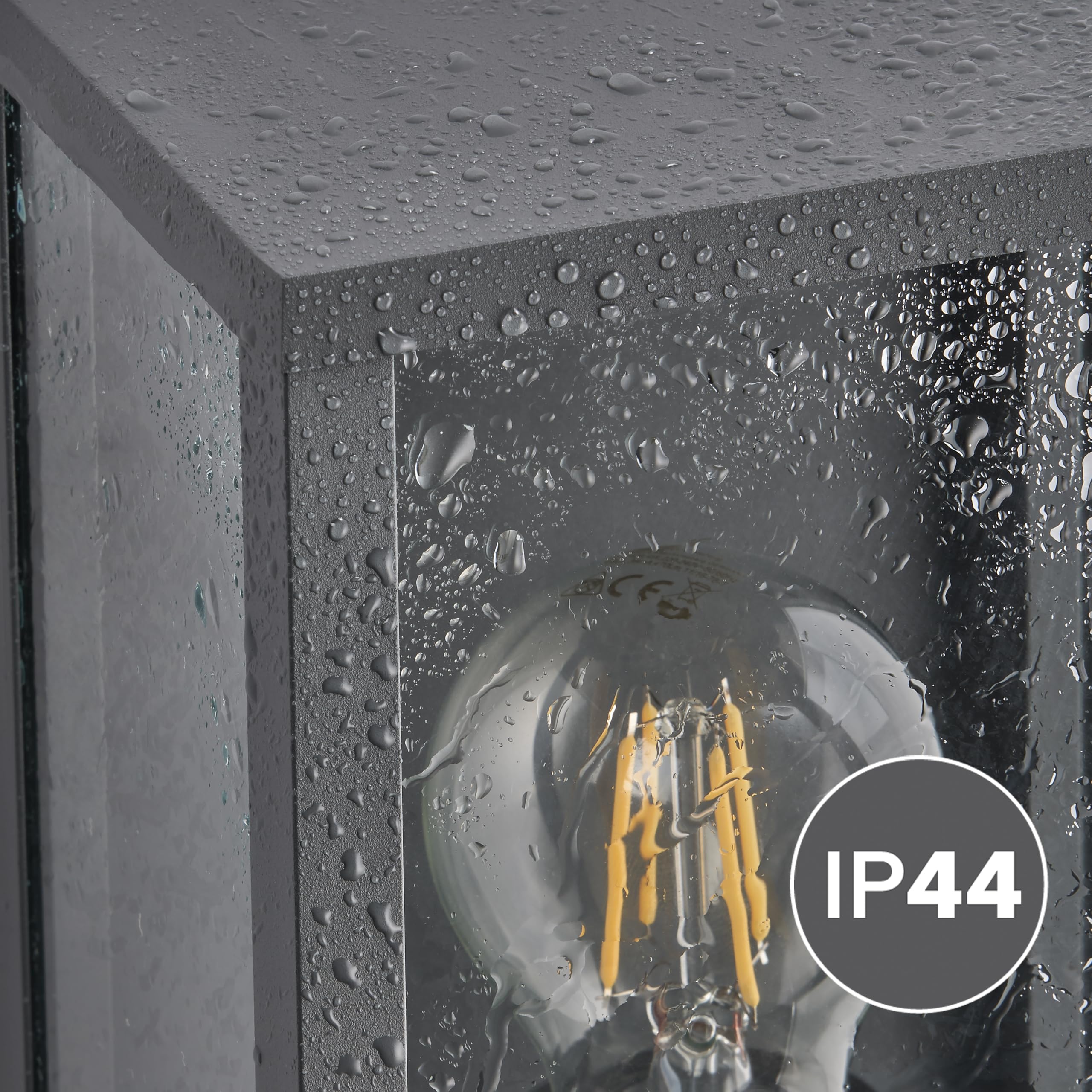 Für das perfekte Ambiente im Outdoor-Bereich fehlt neben der passenden Dekoration vor allem eine schöne Beleuchtung. Unsere Serie GARONNE passt perfekt zu gradlinigen Aussenmöbeln und spendet eine angenehme Beleuchtung und ein perfektes Ambiente für entspannte Sommerabende -ob ein gut ausgeleuchteter Eingangsbereich, Weg zum Haus oder in den Garten oder einfach nur eine schlichte Wand- und Deckenleuchten für den Balkon. Dank der Schutzart IP44 eignet sich die 26 x 14 cm grosse Wandleuchte ideal für die Beleuchtung Ihres Aussenbereichs. Das anthrazitfarbige Druckguss Aluminium unterstützt die gradlinige Formgebung und stellt eine stilsichere Kombination mit modernen Elementen im Aussenbereich dar. Für eine energiesparende Beleuchtung empfiehlt sich die Verwendung eines LED Leuchtmittels. Diese sind eine optimale Alternative zu herkömmlichen Halogen Leuchtmitteln und stehen für eine hohe Lichtqualität und eine Energieeinsparung von bis zu 80%. Zusätzlich profitieren Sie bei LED Leuchtmitteln von einer langen Lebensdauer, einer geringen Wärmeentwicklung und schonen gleichzeitig die Umwelt.