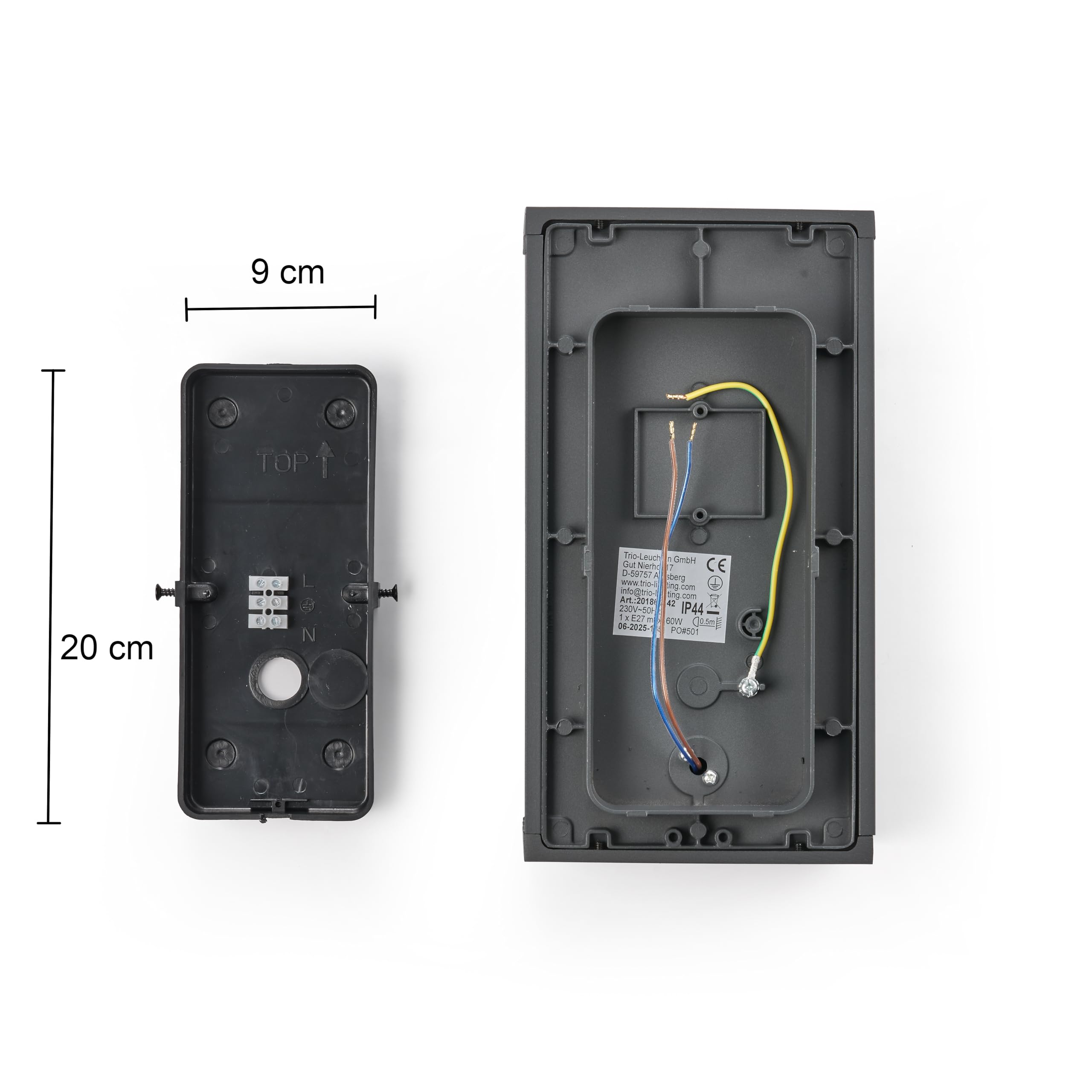 Trio Leuchten Aussen Wandleuchte Garonne 201860142, Aluminium Druckguss Anthrazit, exkl. 1x E27, Schwarz
