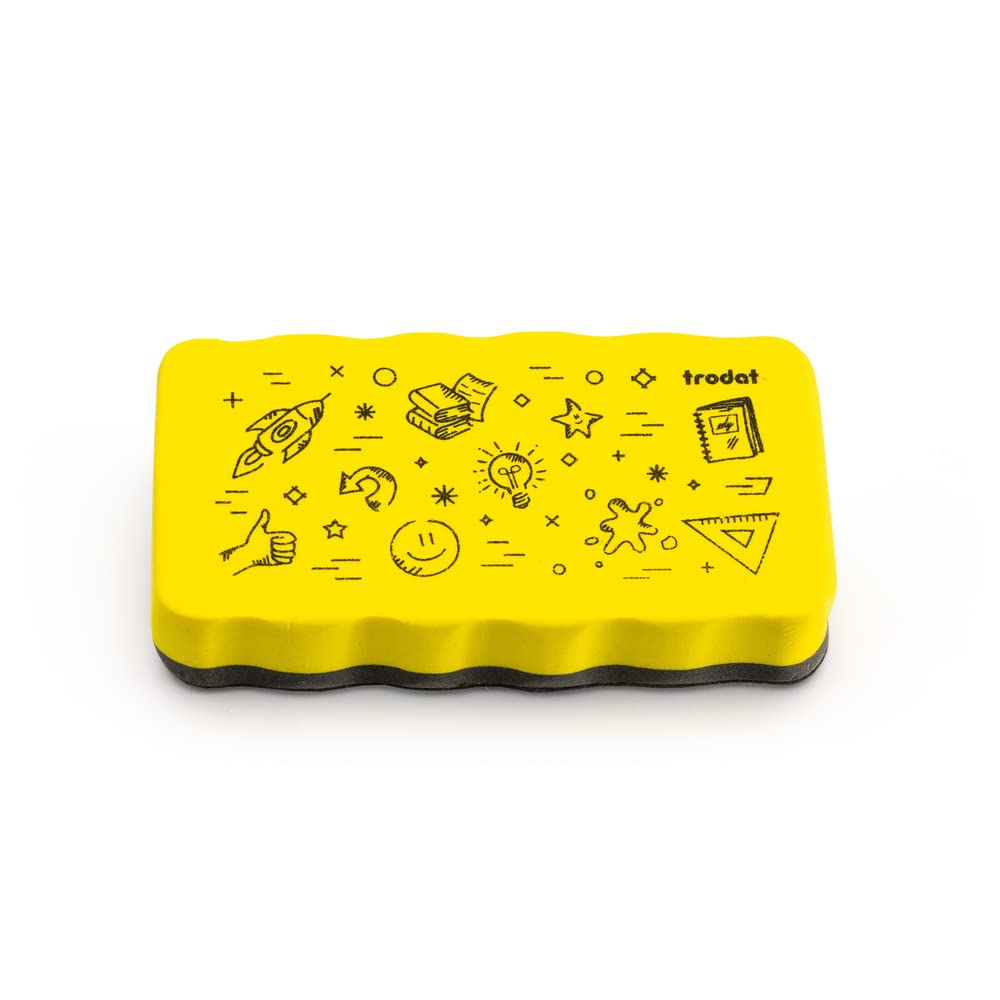 Trodat Radierschwamm für Whiteboards – magnetisch haftend, Zeichnungen von Markern und Stiften trocken abwischen – Grösse 10,5 x 5,5 x 1,8 cm, Gelb
