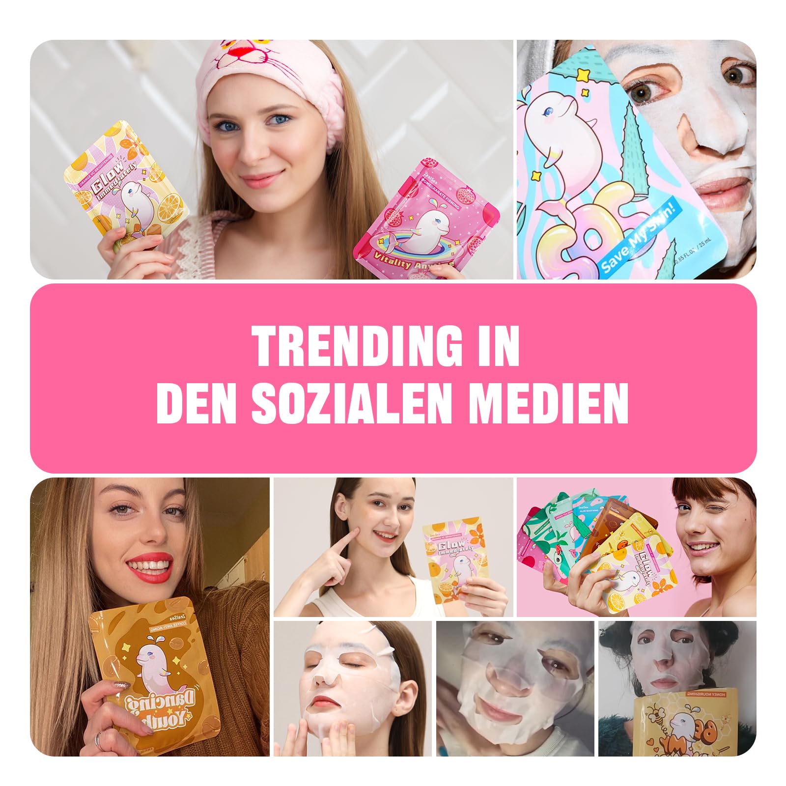 Das ZealSea Gesichtsmasken Set mit 28 Tuchmasken bietet eine vielseitige und sanfte Gesichtspflege fuer Maedchen, Kinder und Frauen. Die Masken vereinen feuchtigkeitsspendende, aufhellende und beruhigende Pflegeeigenschaften, um die Haut optimal zu versorgen und ihr ein frisches, gepflegtes Aussehen zu verleihen.