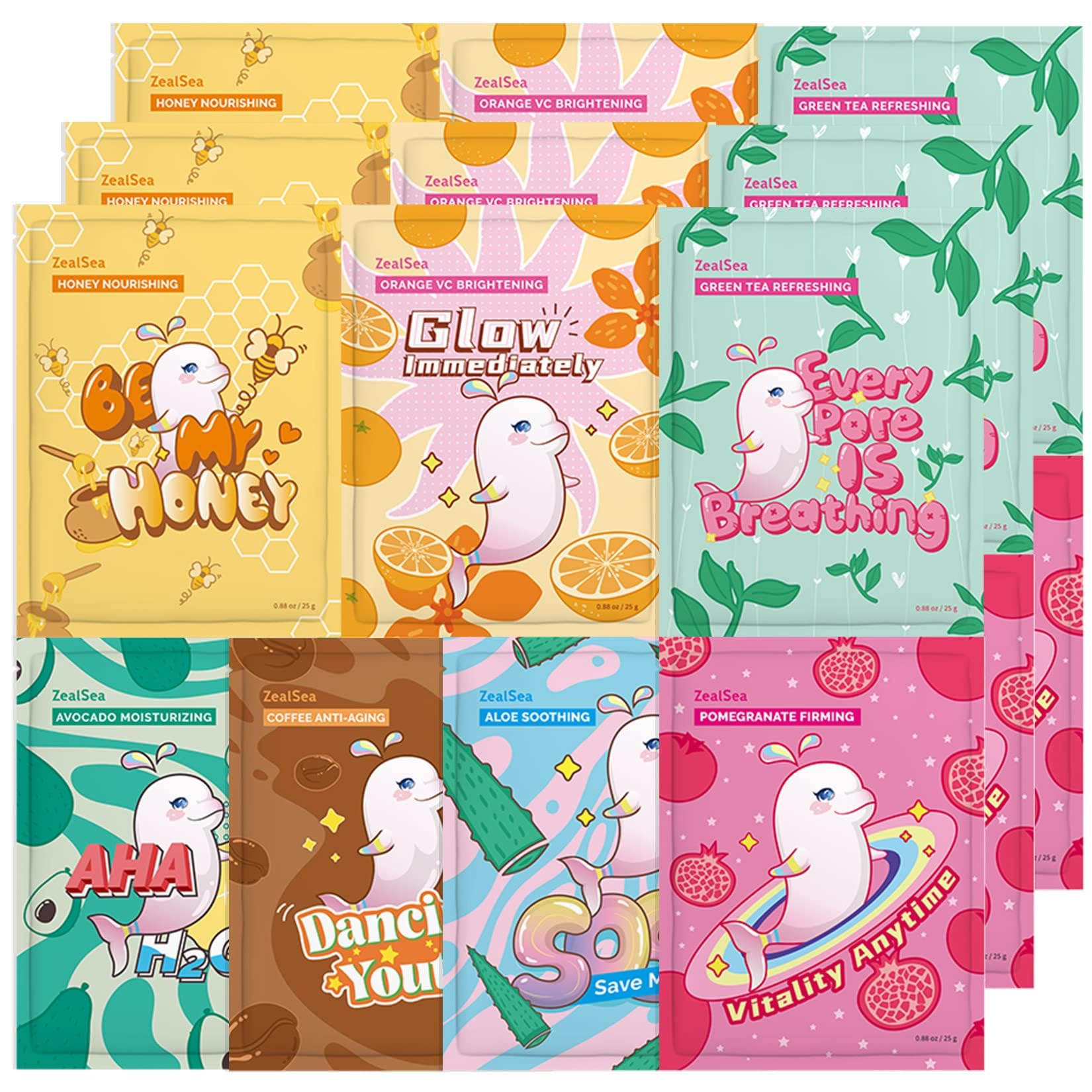ZealSea Gesichtsmasken Set – Feuchtigkeitsspendende, aufhellende & beruhigende Tuchmasken (21 Stueck)