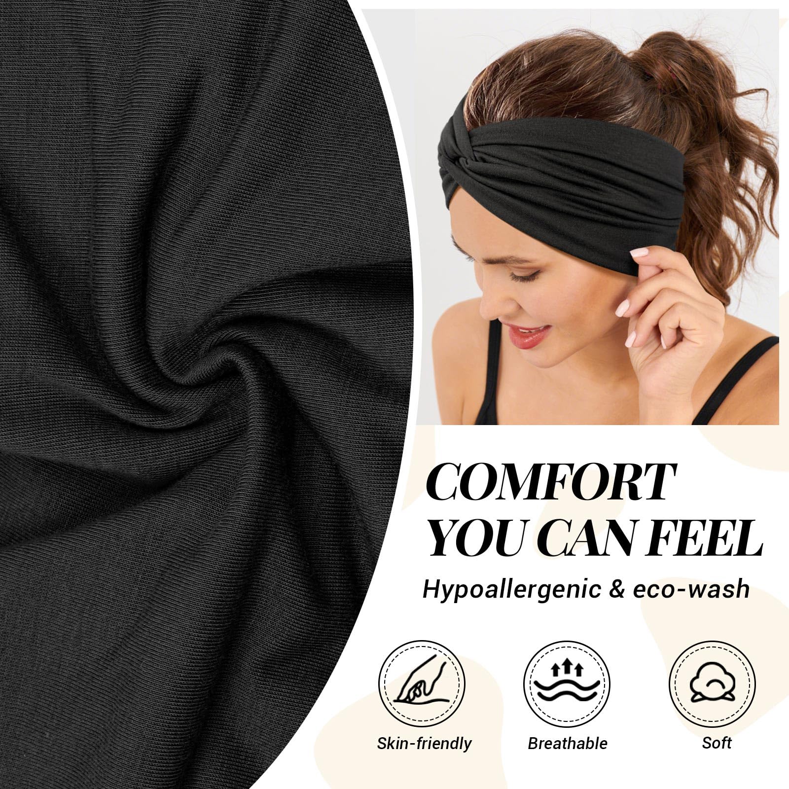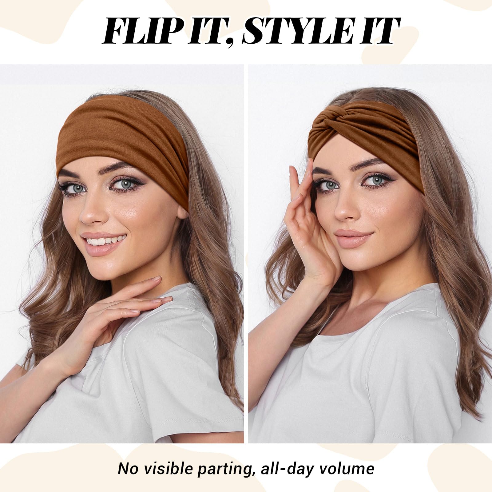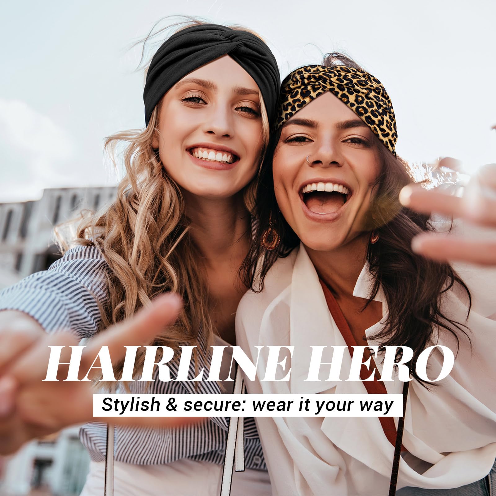 Tumurup 4 Pcs Haarband Damen Dünn, Stirnband Damen Sport - Breite Elastische Weiche Haarbänder für Yoga, Fitness & Kosmetik - Headband Haarschmuck Summer (Braun, Schwarz, Leopard Braun, Leopard Grau)