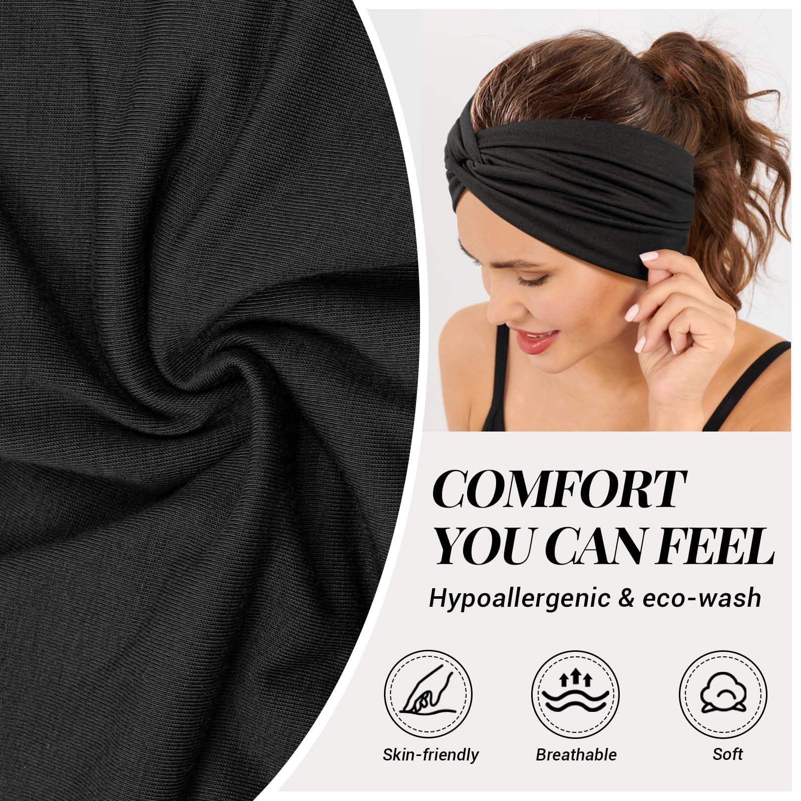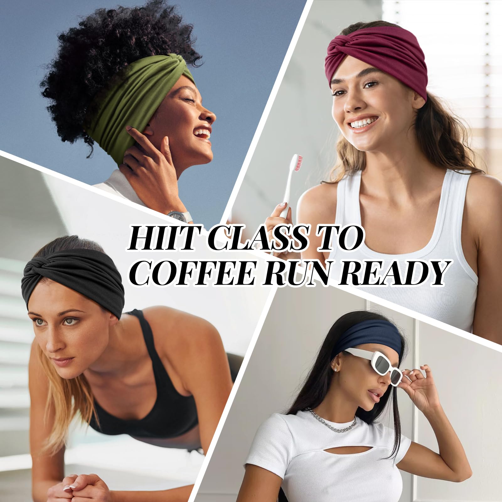 Tumurup 4 Pcs Haarband Damen Dünn, Stirnband Damen Sport - Breite Elastische Weiche Haarbänder für Yoga, Fitness & Kosmetik - Headband Haarschmuck Summer (Schwarz, Lila, Grün, Blau)