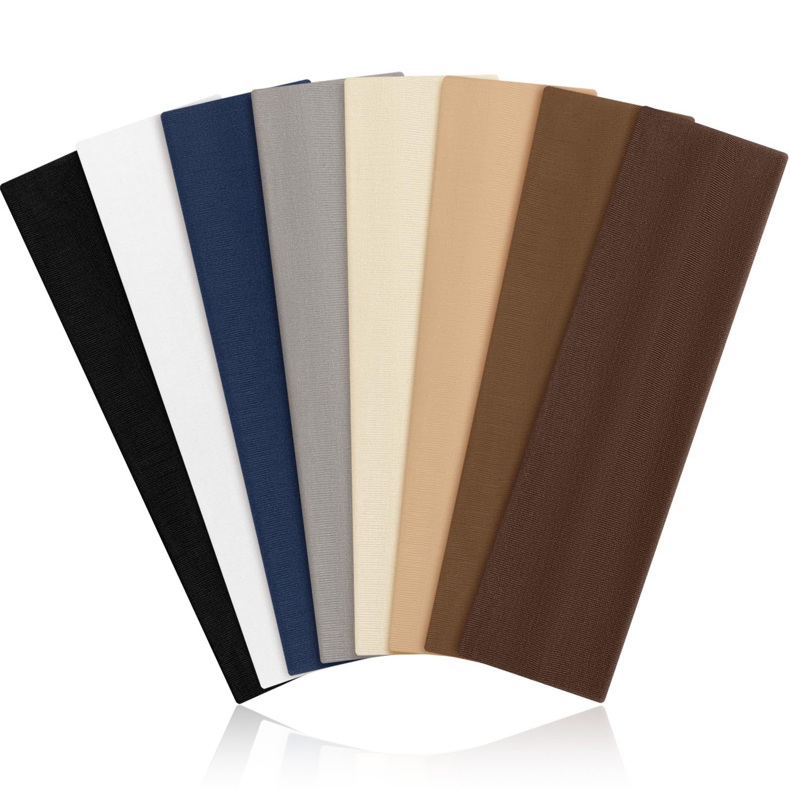 Verpackung: Enthält 8 -Haarband Damen.  Produktspezifikationen: Stil:Elastische, rutschfeste KopfbänderFarben: Schwarz, weiss, grau, blau, dunkelbraun, braun, hellbraun, apricotMaterial: 95 % Polyester, 5 % Spandex – schweissabsorbierend, hautfreundlich, hoch elastisch, atmungsaktiv, leicht, schnell trocknend und formbeständig.Grösse: Breite 6 cm, ungedehnt 22 cm, dehnbar bis 37 cm. Einheitsgrösse, geeignet für Frauen und Mädchen. Kein Ziehen, Haken oder Beschädigung der Haare. Langzeitkomfort garantiert.  Produkteigenschaften: Schnell schweissabsorbierend: Lässt Schweiss schnell verdunsten, hält die Stirn trocken und verhindert Haarausfall. Ideal als modisches Accessoire.Weich und maschinenwaschbar: Angenehm auf der Haut, doppellagig und rutschfest.Hochwertig und geräumig: Schützt vor Schweiss in den Augen, bietet Komfort und hält dickes sowie dünnes Haar sicher an Ort und Stelle.Ganzjährig tragbar: Passt zu jeder Gelegenheit und kombiniert sich gut mit den meisten Outfits.Vielseitig einsetzbar: Ideal für Gesichtspflege, Make-up, Maskenauftragen, Frisieren, Training, Wandern, Laufen, Fitness, Volleyball, Softball, Baseball.  Service: Bei Fragen oder weiterer Hilfe stehen wir Ihnen gerne zur Verfügung. Ihre Zufriedenheit ist unser Ziel – wir bieten hochwertige Produkte und exzellenten Service.