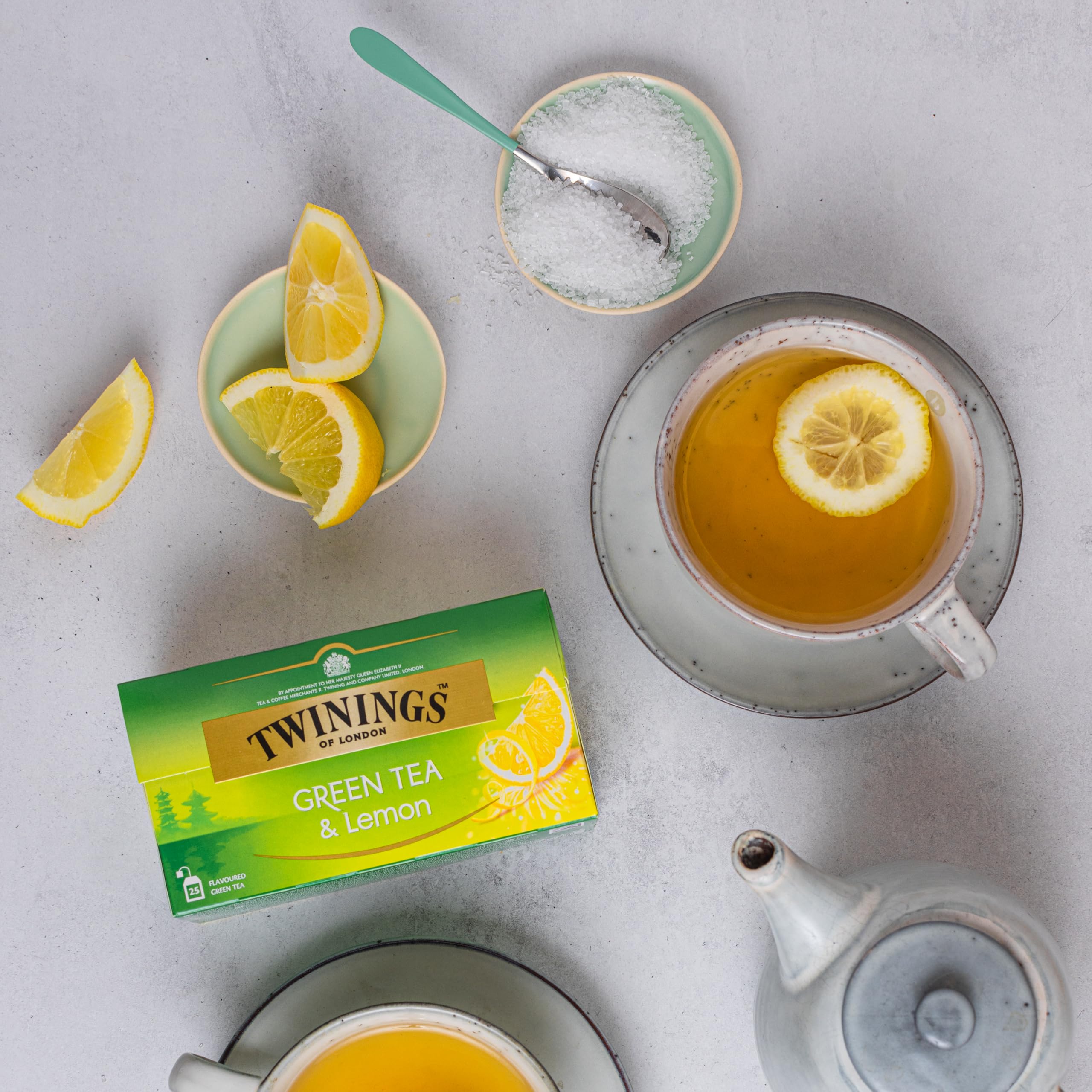 Twinings Green Tea and Lemon - Grüner Tee mit erfrischendem Zitronengeschmack im Teebeutel - einzigartige Grüntee Mischung verfeinert mit Zitronenschale, 25 Teebeutel (40 g)