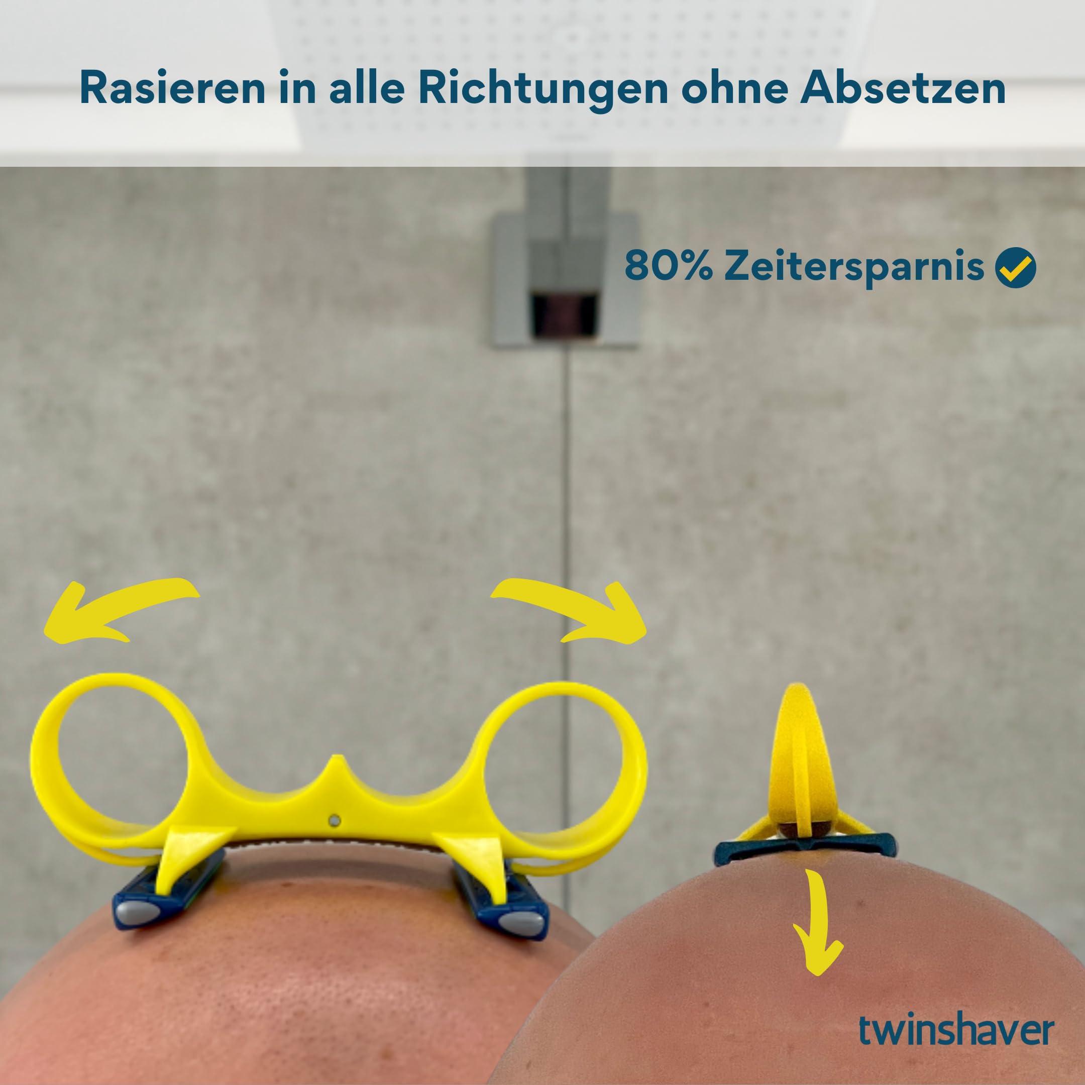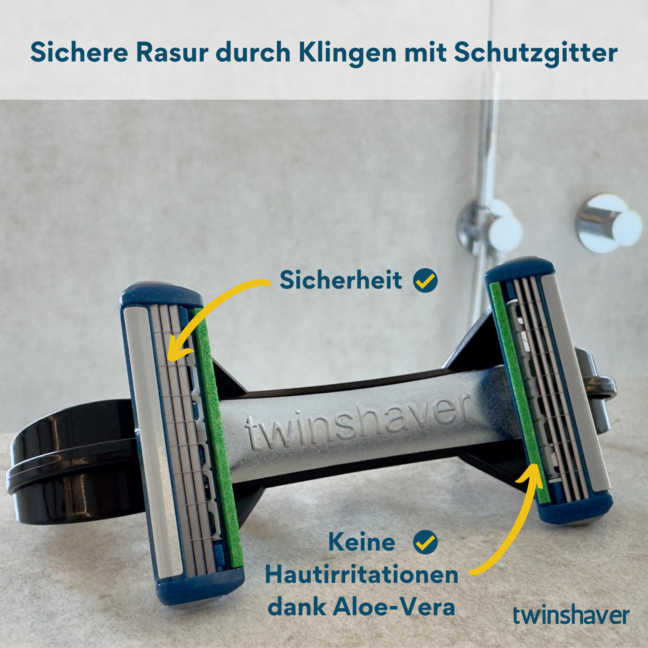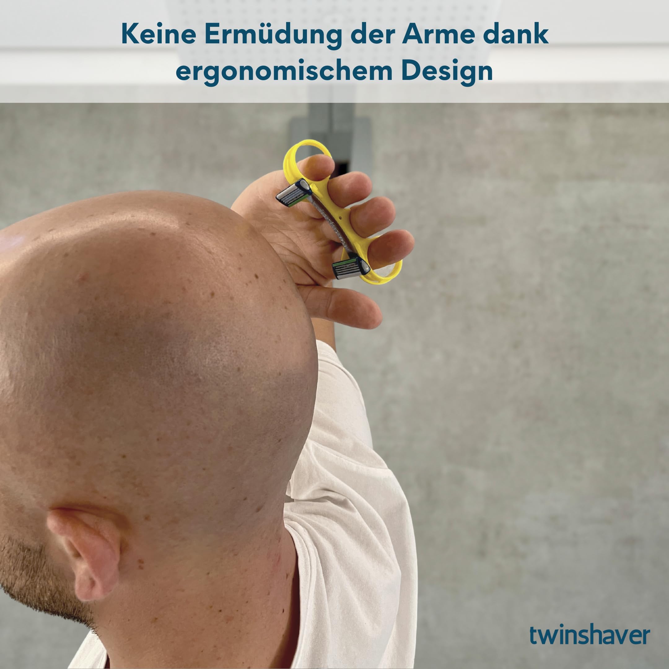 twinshaver Rasur schnell und sicher. 80% Zeitersparnis dank Doppelklingen. Keine Ermüdung des Arms. Sichere Rasur durch geschützte Klingen. Für den ganzen Körper. Der intelligente Nassrasierer. Dank der ergonomischen Form unseres Rasierers bleibt ihre Hand stets in einer natürlichen Haltung und die Arme ermüden beim Rasieren deutlich weniger. Die Form führt ebenfalls dazu, dass zwei Klingen gleichzeitig verwendet werden können. In Kombination mit dem Verletzungsschutz der hochwertigen Markenklingen können Sie einfach in alle Richtungen Rasierer ohne Absetzen oder Verletzungsgefahr. Das Ergebnis ist eine perfekte Nassrasur für Kopf und Körper. Durch diese innovative Art der Rasur haben Sie ausserdem eine Zeitersparnis von 80 Prozent, die gerade an einem stressigen Morgen unbezahlbar sein kann. Vielseitig nutzbar. Der twinshaver kann nicht nur von Männern genutzt werden, sondern ist auch bei Damen sehr beliebt. Sie schätzen die Möglichkeit einer schnellen und sicheren Körper Rasieren und Körper Rasur, Beine Rasieren, Arme Rasieren oder Achsel Rasieren. Direkt loslegen: Im Lieferumfang sind direkt vier hochwertige Markenklingen mit Schutzgitter und Aloe Vera Streifen beigelegt. So können Sie nach Erhalt des twinshaver umgehend eine schnelle Rasur geniessen. Ein twinshaver plus vier hochwertige Marken-Rasierklingen von Wilkinson. Kopf Rasierer Glatze Nass. Kopf Rasierer Herren Nass. Rasierer für Kopf. Kopfrasierer Glatze. Körperasierer Herren. Körperrasierer Herren. Körperrasierer Herren Nass. Körperasierer Damen. Körperrasierer Damen. Körperrasur Herren Nass. rasierer körper herren