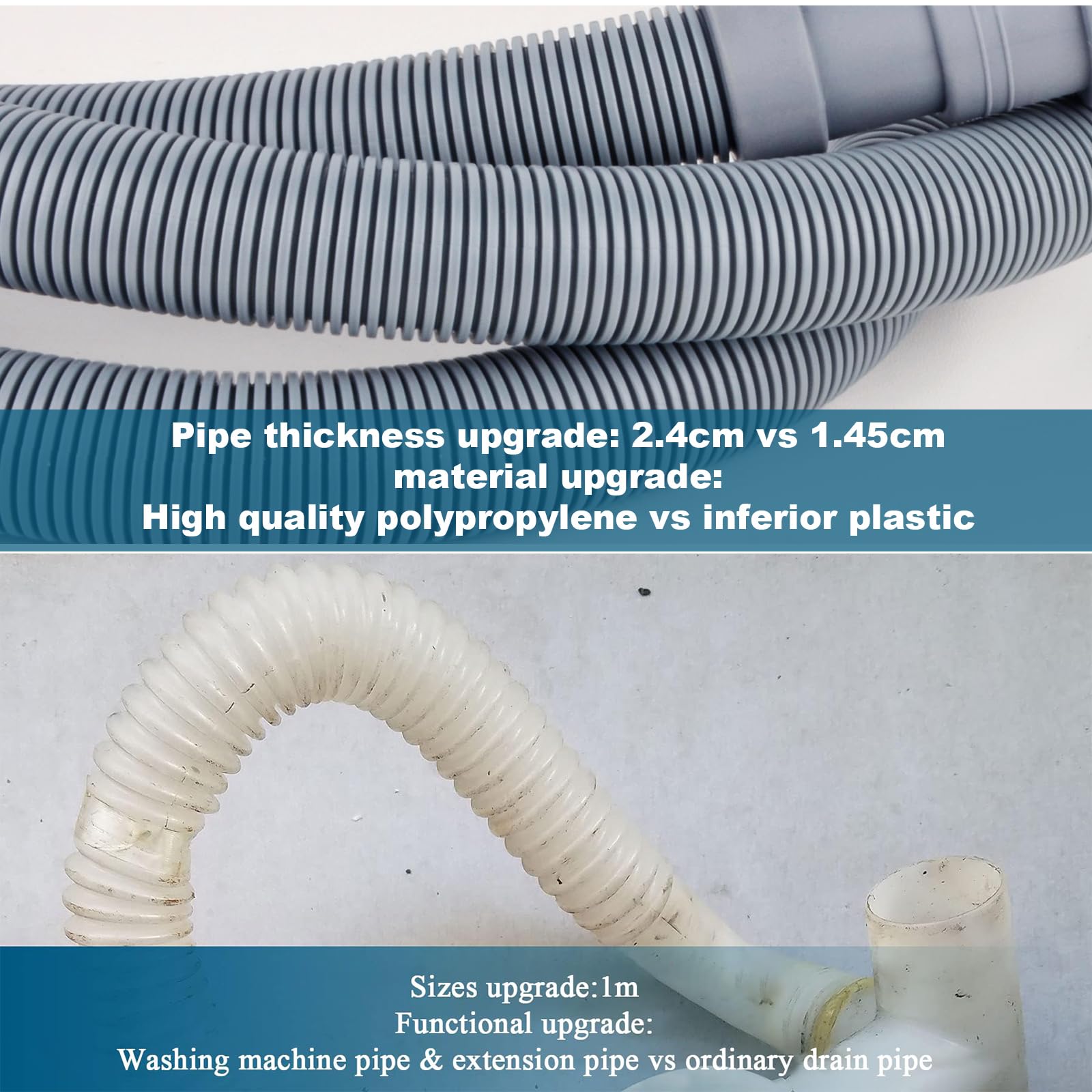 twoonto Ablaufschlauch für Waschmaschinen, 1M Universal Waschmaschinenschlauch, Ablaufschlauch Geschirrspüler Verlängerungsset Inklusive Schlauchverbinder, Schlauchklemmen, U Halterung