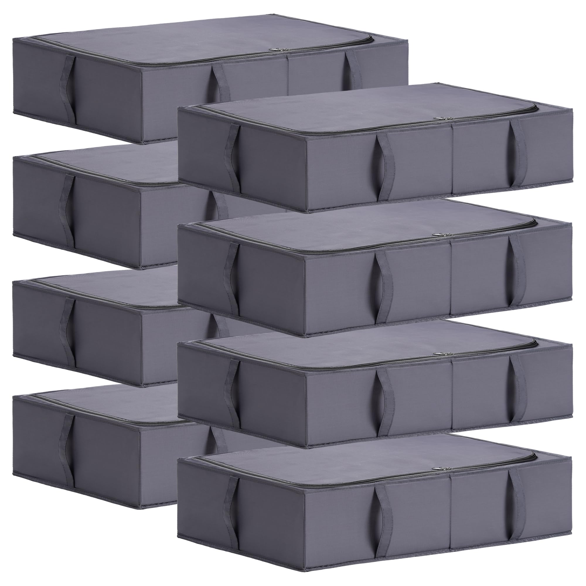 TYEERS Unterbett Aufbewahrungsbox mit Deckel, Strapazierfähiger Stoff, Waschbar, Zusammenklappbar, Boxen Aufbewahrung für Kleidung, Decken, Bettwäsche, Schuhe, 70x42x18 cm, 8er-Pack, Dunkelgrau