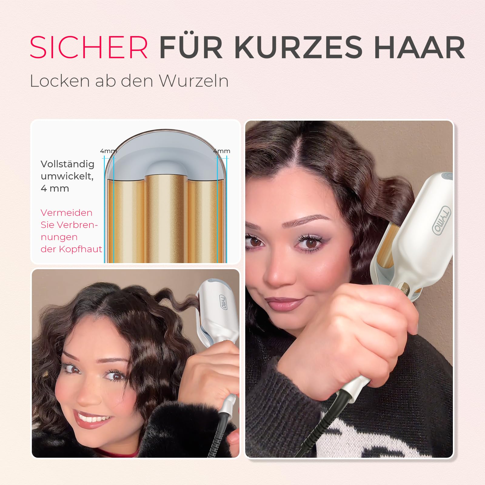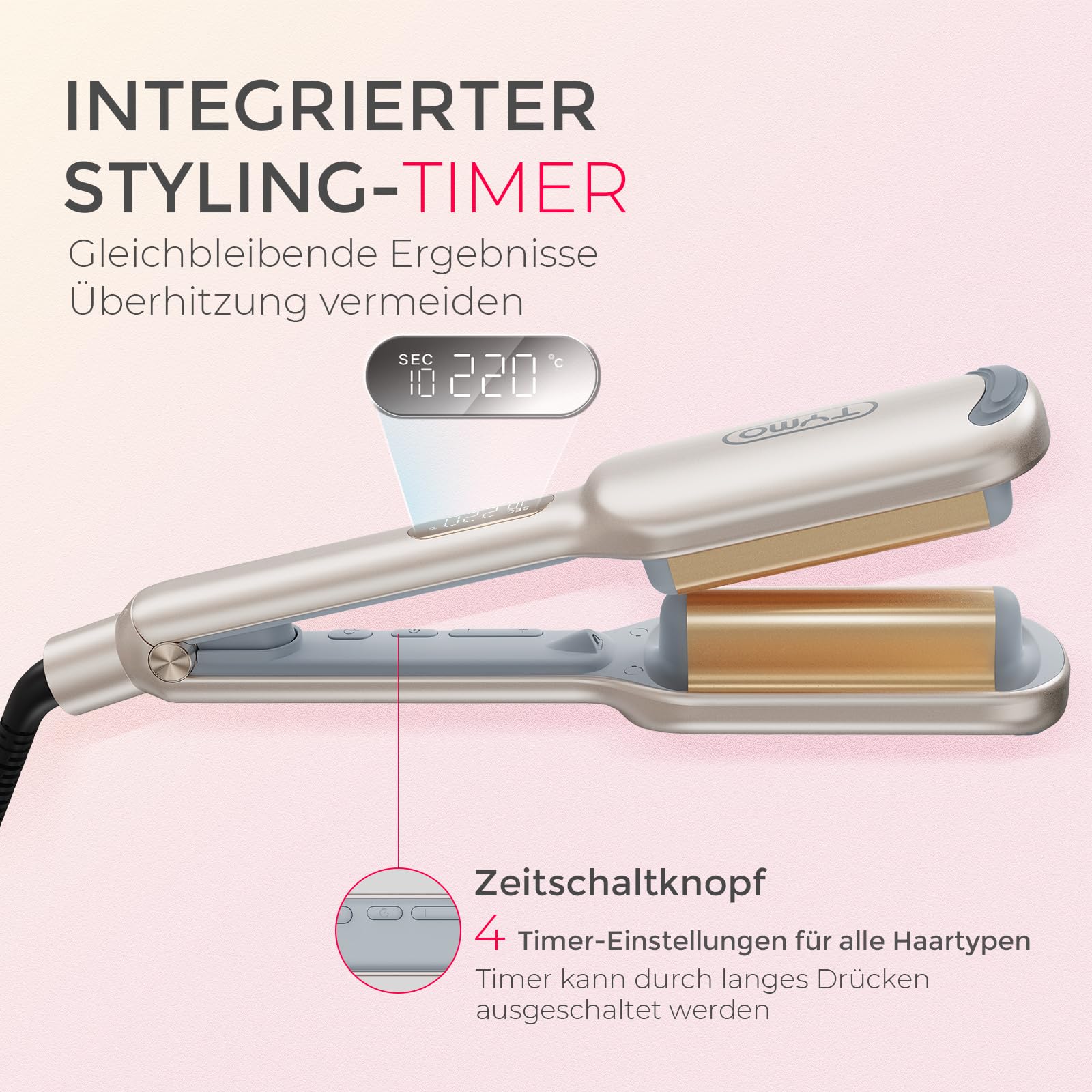 TYMO ROVY Compact Welleneisen für haare, Lockenstab grosse Locken geeignet für Anfänger, Sofortiges Wellen, 25mm Ionen Hair Curler für kurze Haare mit 4 Temperaturen LED-Anzeige, Anti-Verbrennung, Gold