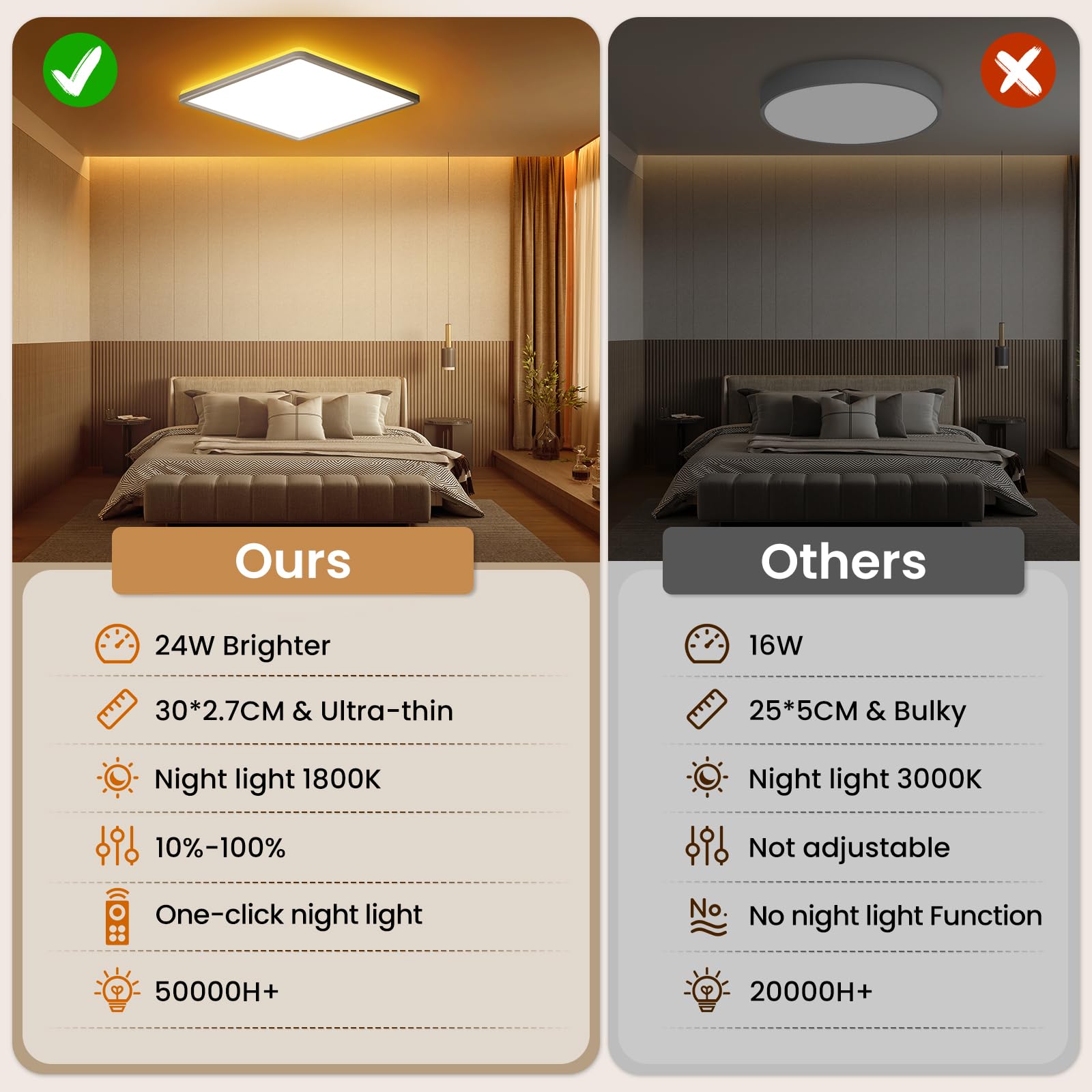 - 【Hervorragende Anpassungsfähigkeit - bequeme Installation】Unsere ultradünne schlafzimmerlampe ist exquisit konzipiert und kann problemlos an verschiedene Deckenflächen angepasst werden. Ihr menschenfreundliches Basisdesign passt nicht nur zu 99% der Abzweigdosen, sondern verfügt auch über die Bequemlichkeit des Plug-and-Play-Prinzips. Die Installation erfordert keinen professionellen Elektriker. Sie müssen nur die einfachen Schritte befolgen und das mitgelieferte Zubehör verwenden, um die Installation unabhängig und mühelos durchzuführen und wahrlich den DIY - Komfort zu realisieren.