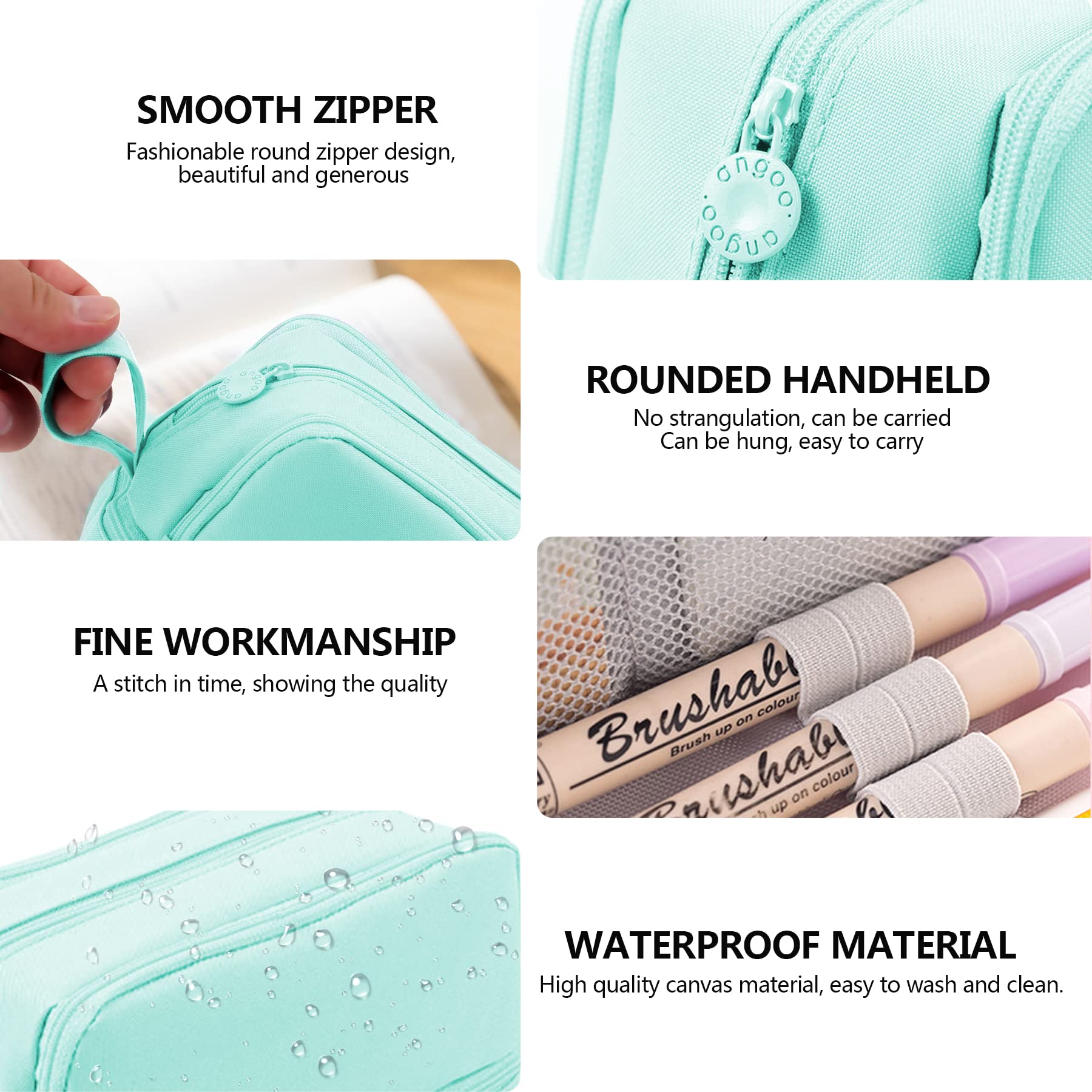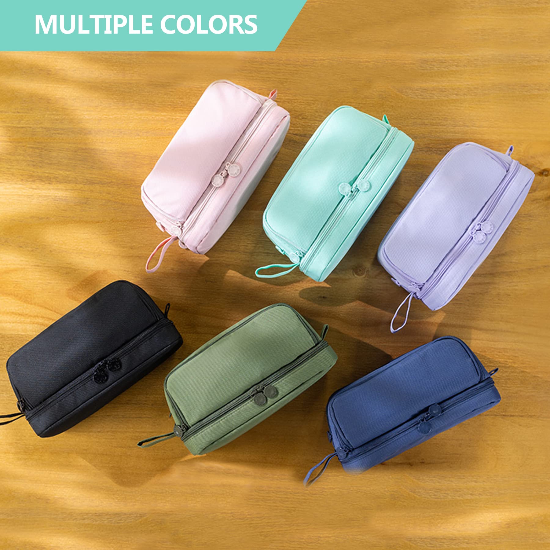 Produktmerkmale:1.Bleistiftbeutel mit grosser Kapazität und 4 Fächern:Öffnen Sie den vorderen Reissverschluss: Es gibt 8 elastische Schlaufen, um die häufig verwendeten Stifte zu halten.Öffnen Sie den hinteren Reissverschluss: Es gibt 5 elastische Riemen und 2 Netztaschen sind praktisch für Radiergummis, Aufkleber und andere Gadgets, die dazu neigen, verloren zu gehen.Öffnen Sie den mittleren Reissverschluss: das Hauptfach mit hoher Kapazität, es ist ein grossartiger Ort, um Ihre grösseren Gegenstände zu verstauen. wie Kugelschreiber, Schere, Klebeband usw.Öffnen Sie den unteren Reissverschluss: Der Boden dieser Tasche ist etwa 1 Zoll tief und bietet genug Platz für einen 7,5-Zoll-Grafikrechner.2. Griff: Einfach zu greifender Griff, tragbar.3. Reissverschluss: Exquisite Verarbeitung und niedliche Reissverschlüsse lassen sich leicht öffnen und schliessen, um Ihnen perfekte Produkte zu bieten.4. Material:Hergestellt aus robustem, verschleissfestem Canvas-Material, bietet es ein angenehmes Gefühl und schützt Ihre Schreibwaren vor Staub, Kratzern und Stössen. Einfach zu lagern und zu reinigen, langlebiger, überlegen.Paket:1 x Bleistiftbeutel (Bleistifte oder Zubehör nicht enthalten)Produktdetails:Grösse: 22 x 9,5 x 10 cm (8,7 x 3,7 x 3,9 Zoll);6 Farben erhältlich: Pink, Schwarz, Mintgrün, Olivgrün, Lila und Marineblau.Notiz:Bitte erlauben Sie geringfügige Massunterschiede, die durch manuelle Messung verursacht werden.Aufgrund der unterschiedlichen Farben des Bildschirms und des Lichts kann es zu geringfügigen Abweichungen kommen.