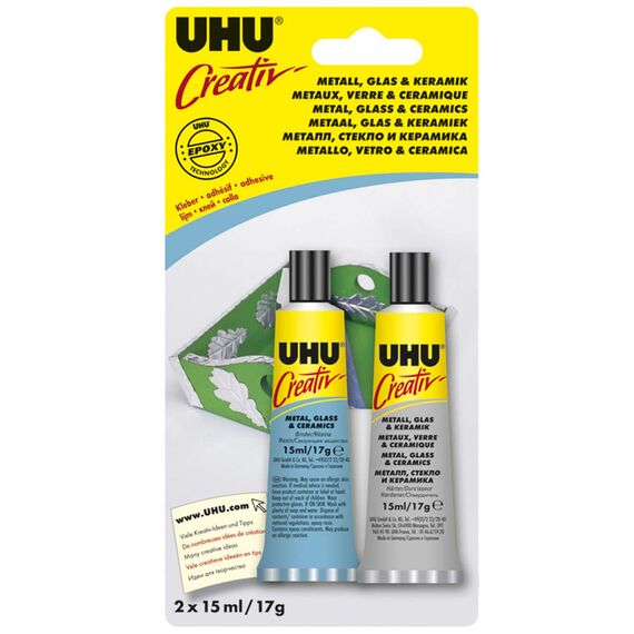 UHU 47285 Spezialkleber, Creativ, Metall, Glas, Keramik, 2 Tuben, 15 ml