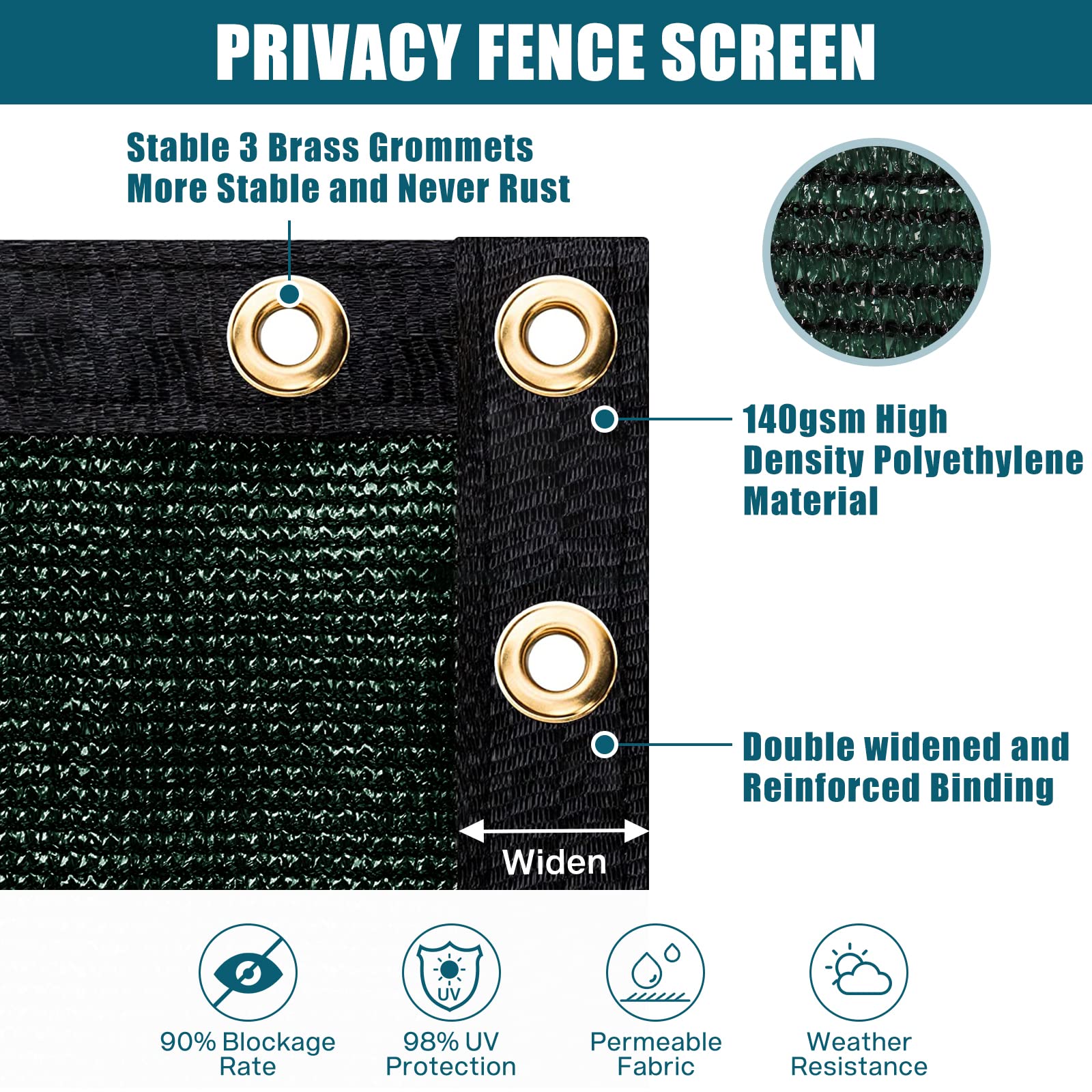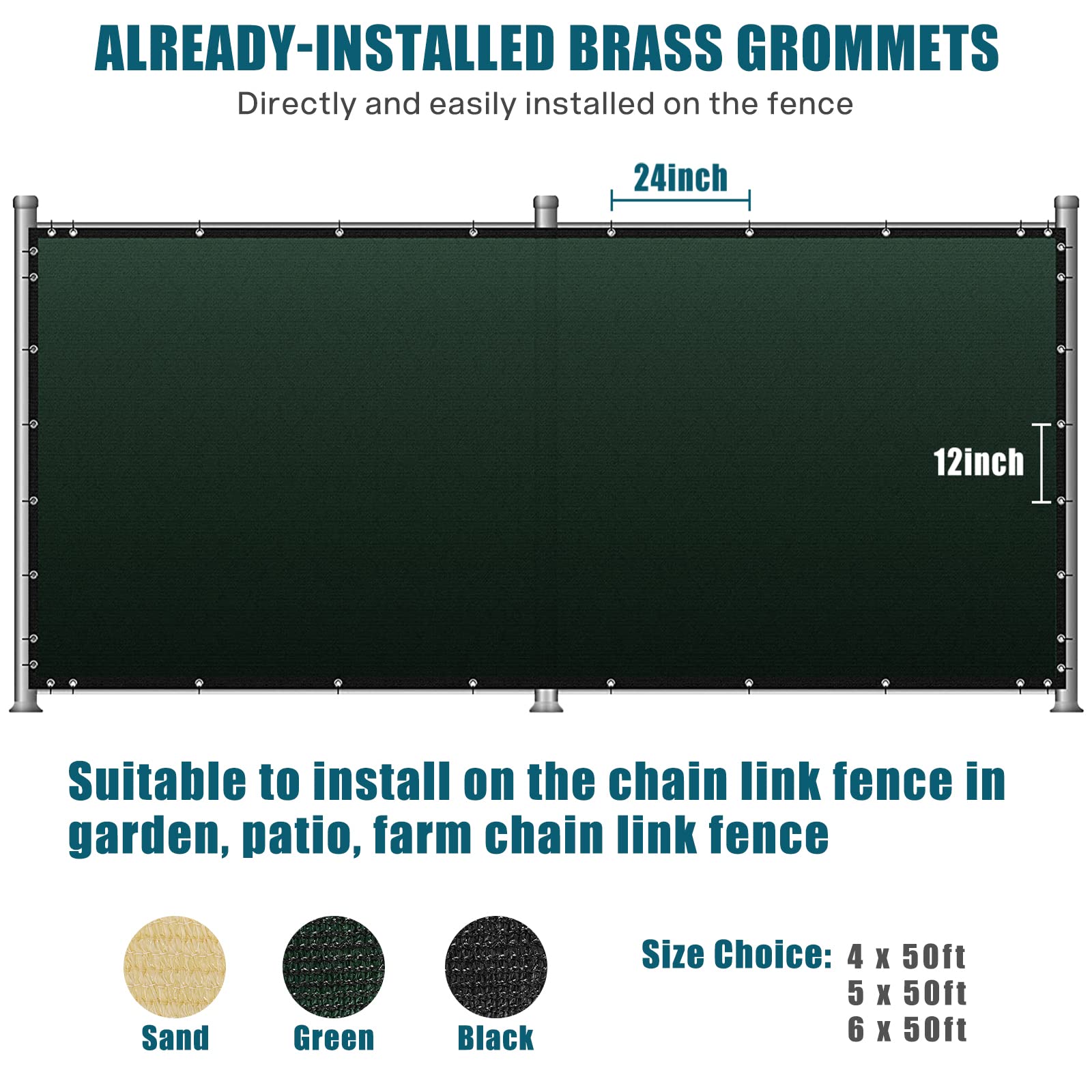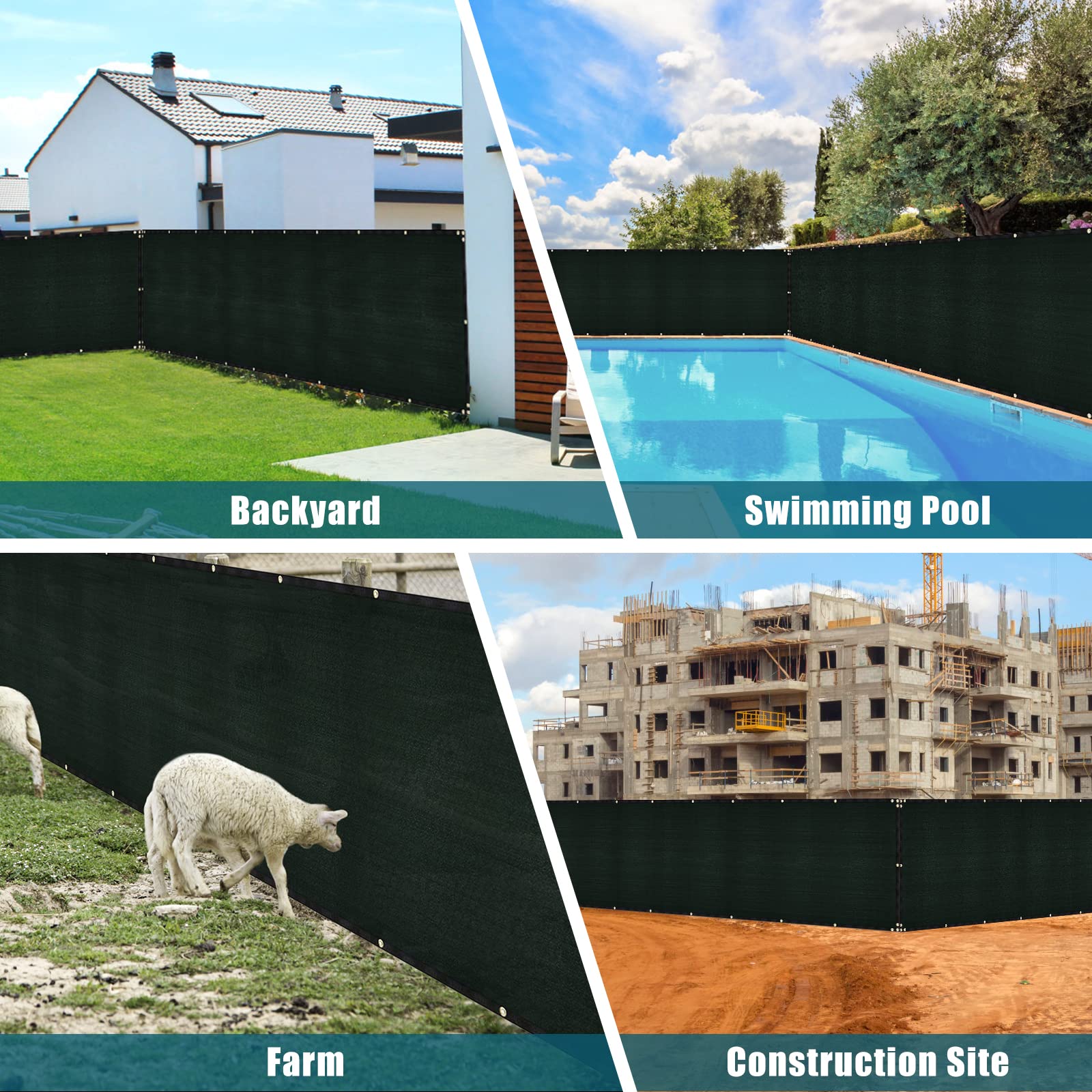 UIRWAY Sichtschutz Zaun 1,82m x 15,24m, Zaunblende Schattiernetz mit ösen 170 g/m² Blockade UV Schutz Windschutz HDPE Gewebe Netz mit Kabelbinder für Gartenzaun Gewächshaus (Grün)