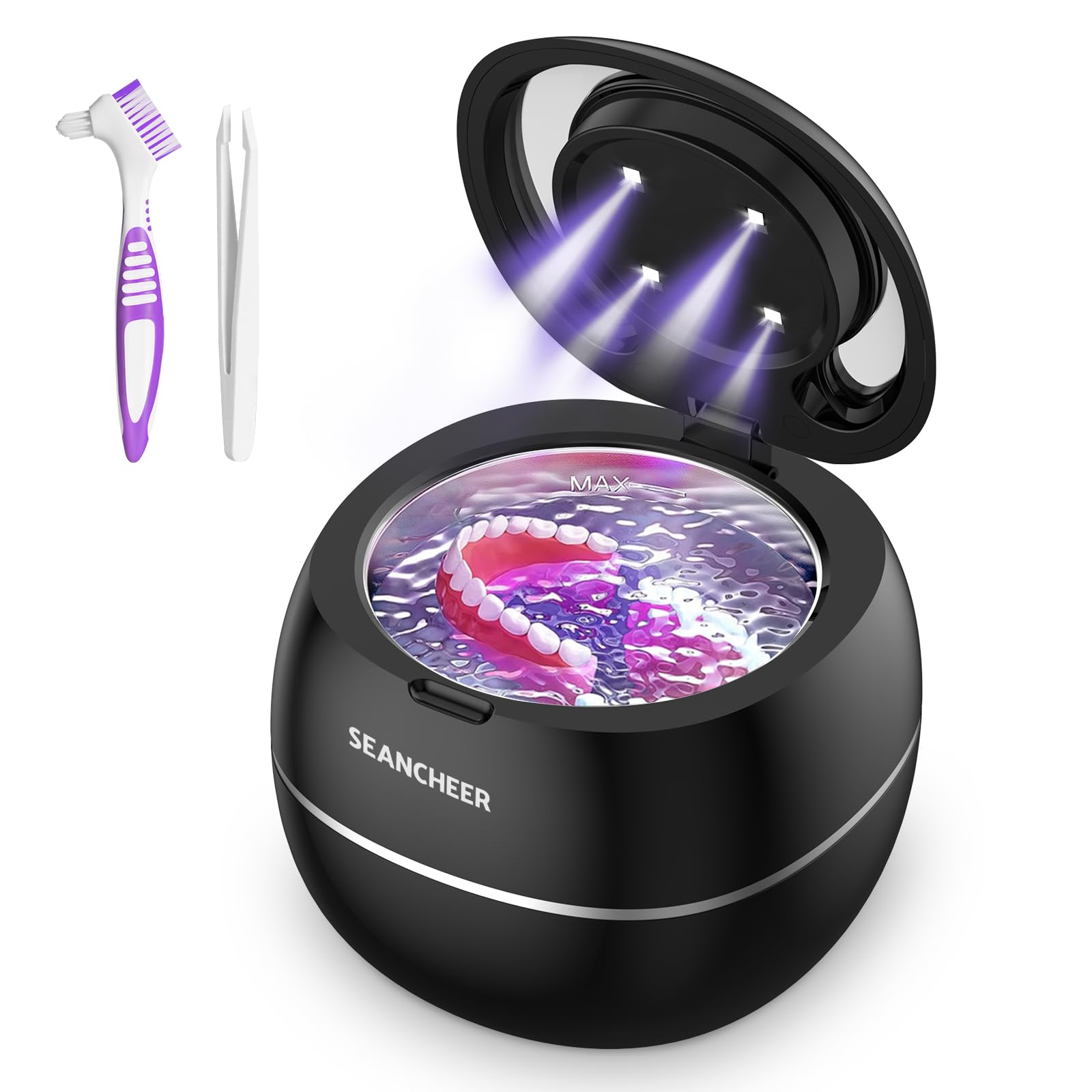 Ultraschallreinigungsgeraet 180 ml – 48.000 Hz Ultraschallreiniger 24 W mit UV Lampe | Ultrasonic Cleaner fuer Zahnersatz, Retainer, Aligner, Prothesen, Zahnschiene & Schmuck (Schwarz)