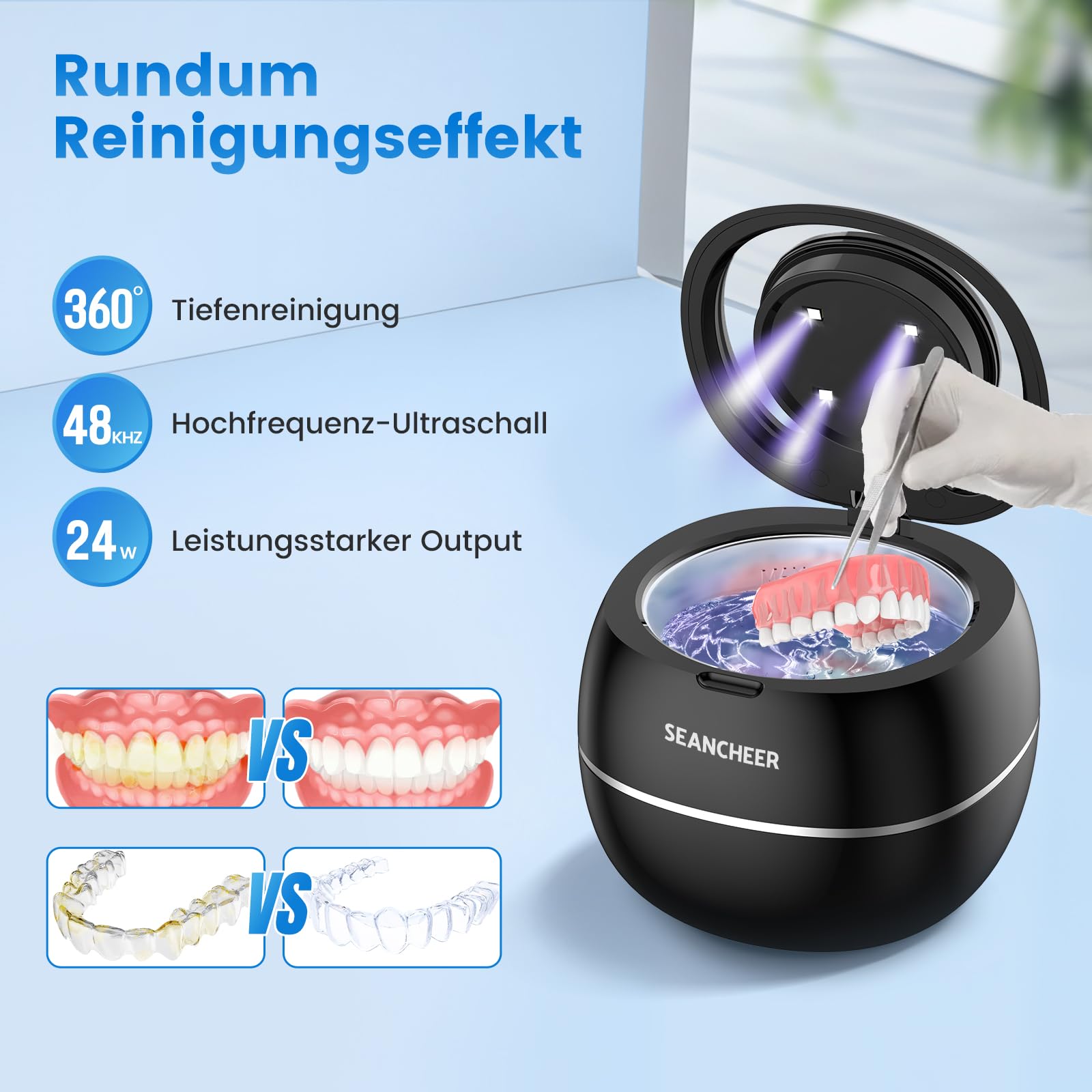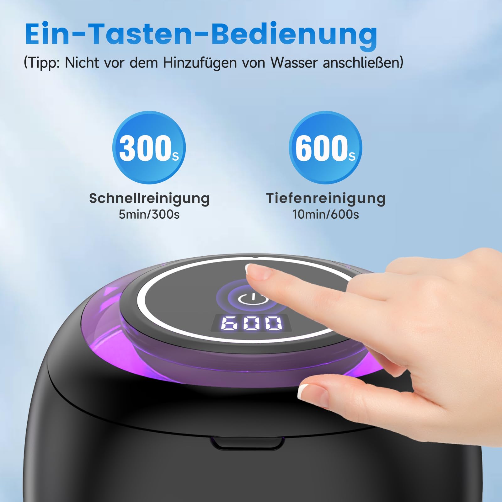 • 48.000 Hz Ultraschallfrequenz fuer gruendliche Tiefenreinigung