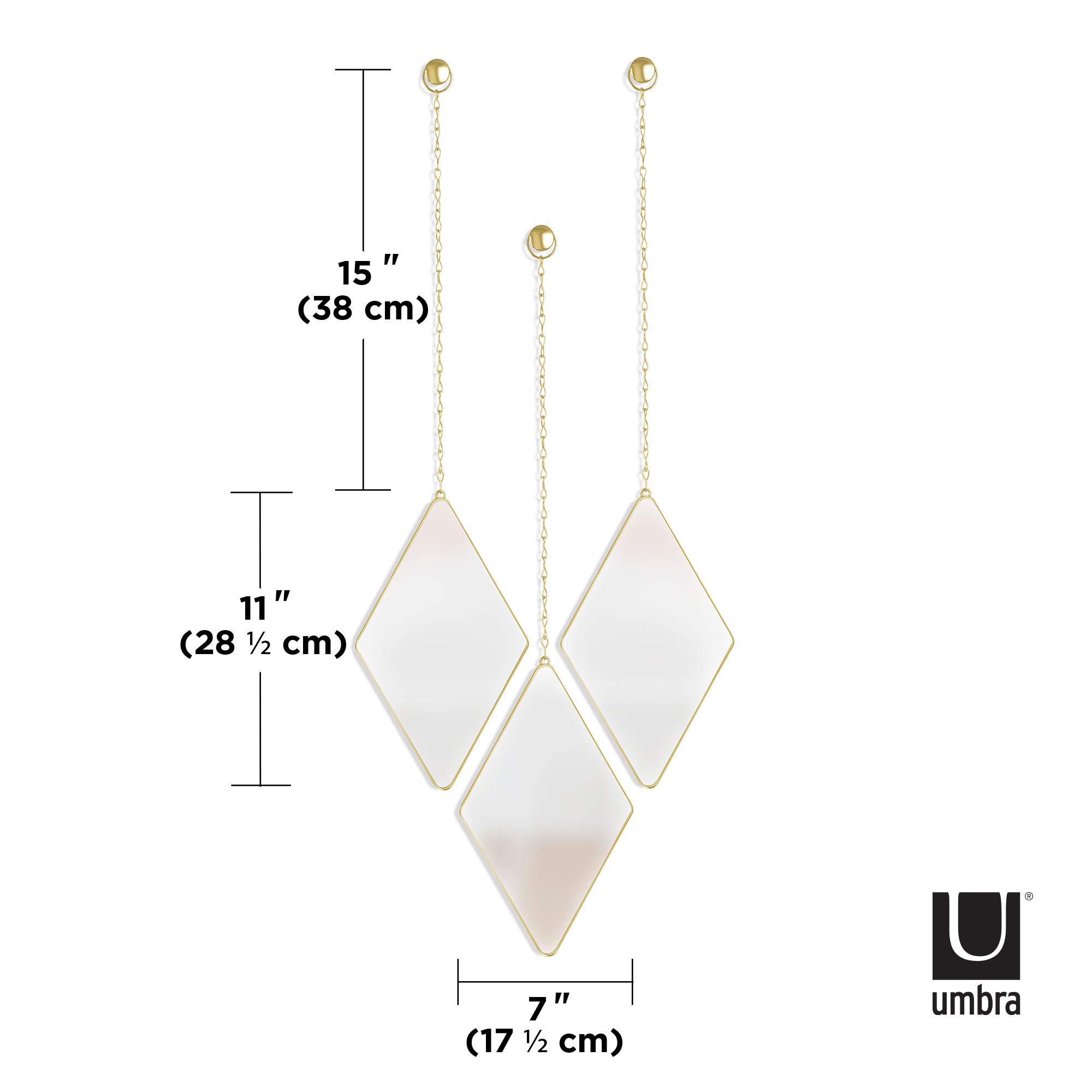 Umbra Dima 3-teiliger Wandspiegel und Wanddekoration, Metall, Messing, Rautenförmig, 29 x 18 x 1.5 cm