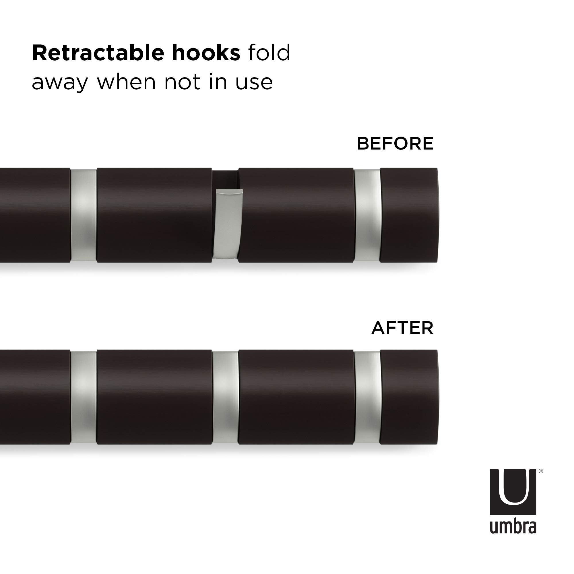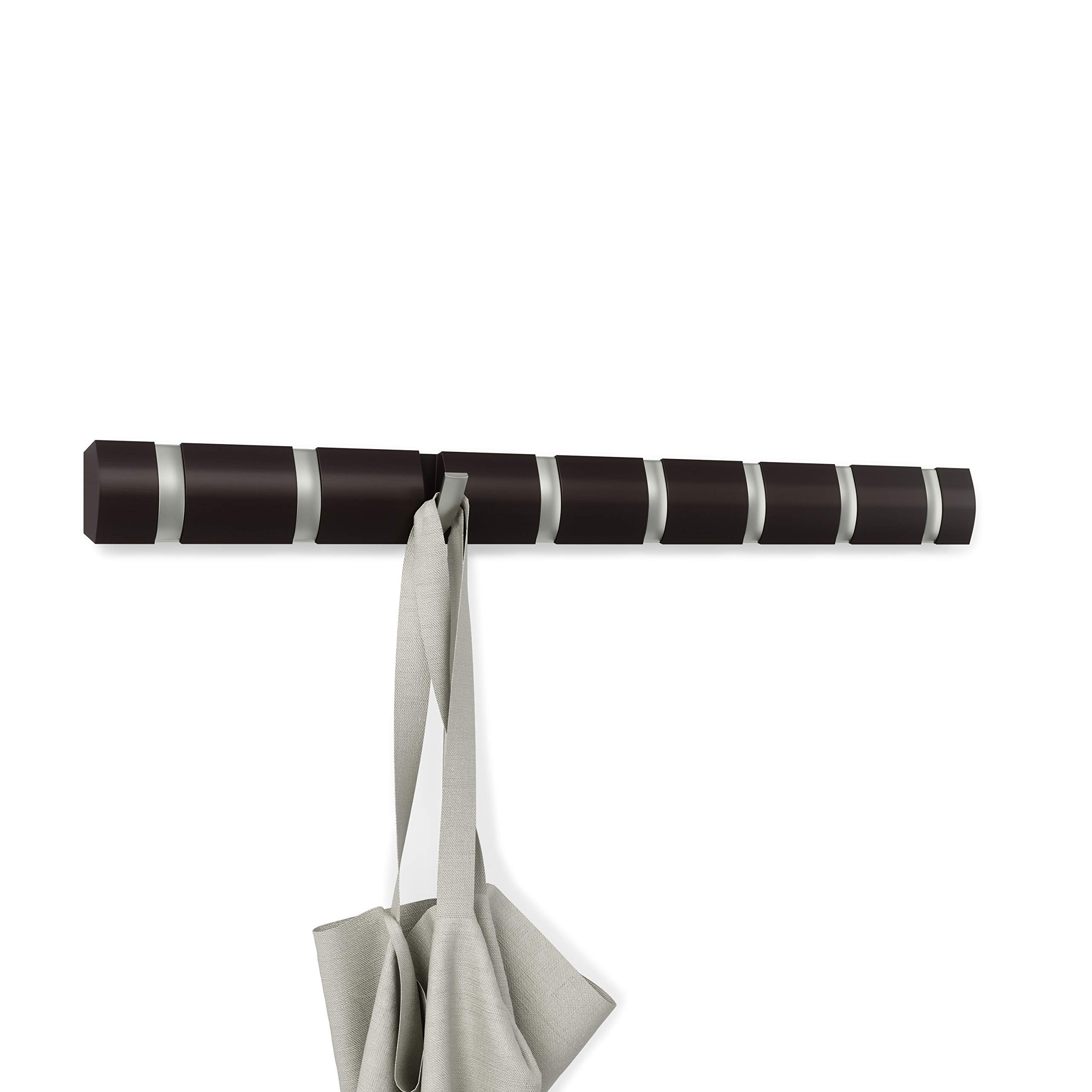 Umbra Flip 8 Garderobenhaken – Moderne, Schlichte und Platzsparende Garderobenleiste mit 8 Beweglichen Haken für Jacken, Mäntel, Schals, Handtaschen und Mehr, Espresso