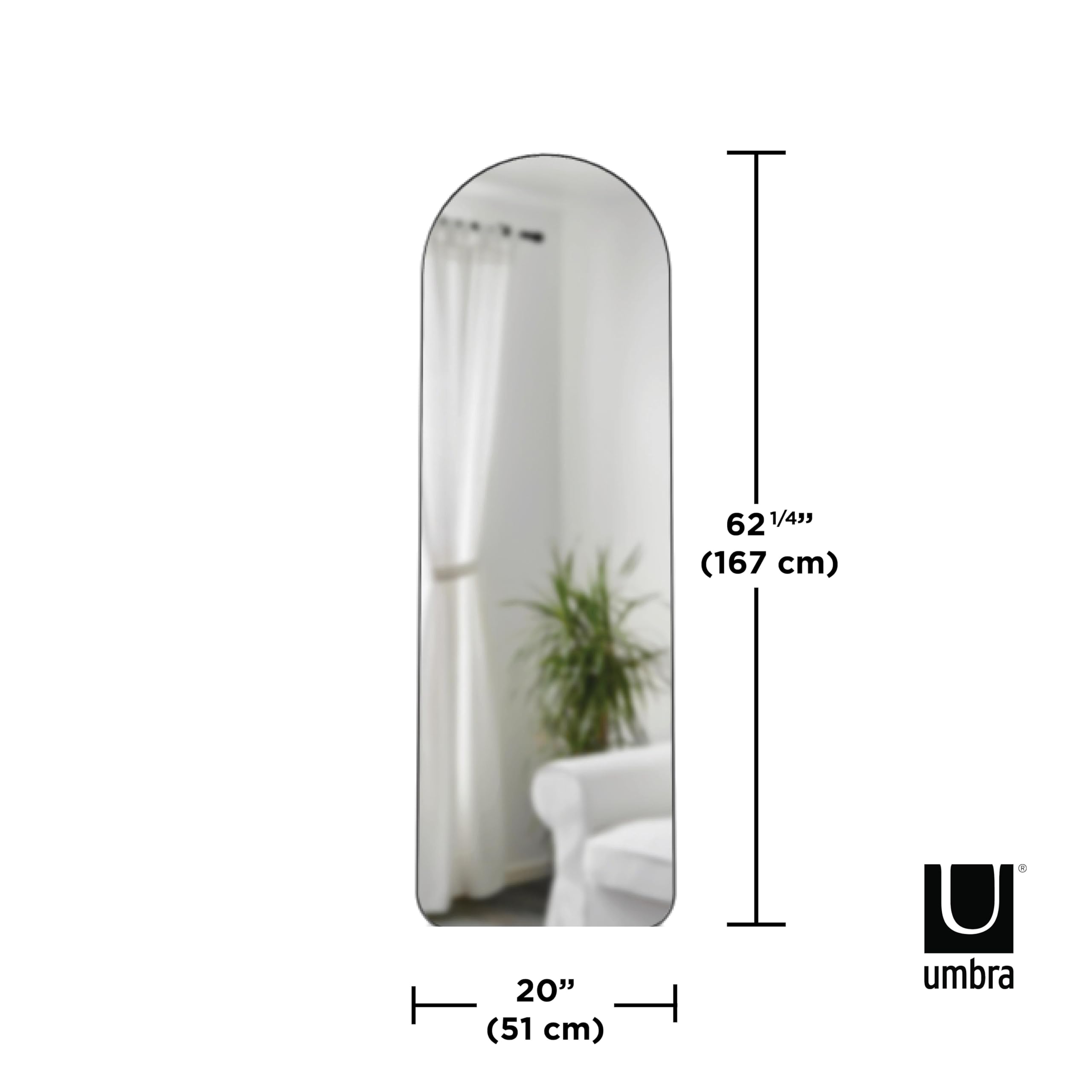Umbra Hubba gewölbter bodenlanger Spiegel mit Metallrahmen, anlehnbar oder zur Wandmontage, moderner Stil für Schlafzimmer, Badezimmer, Eingangsbereich und mehr, 157 x 51 cm, Titan
