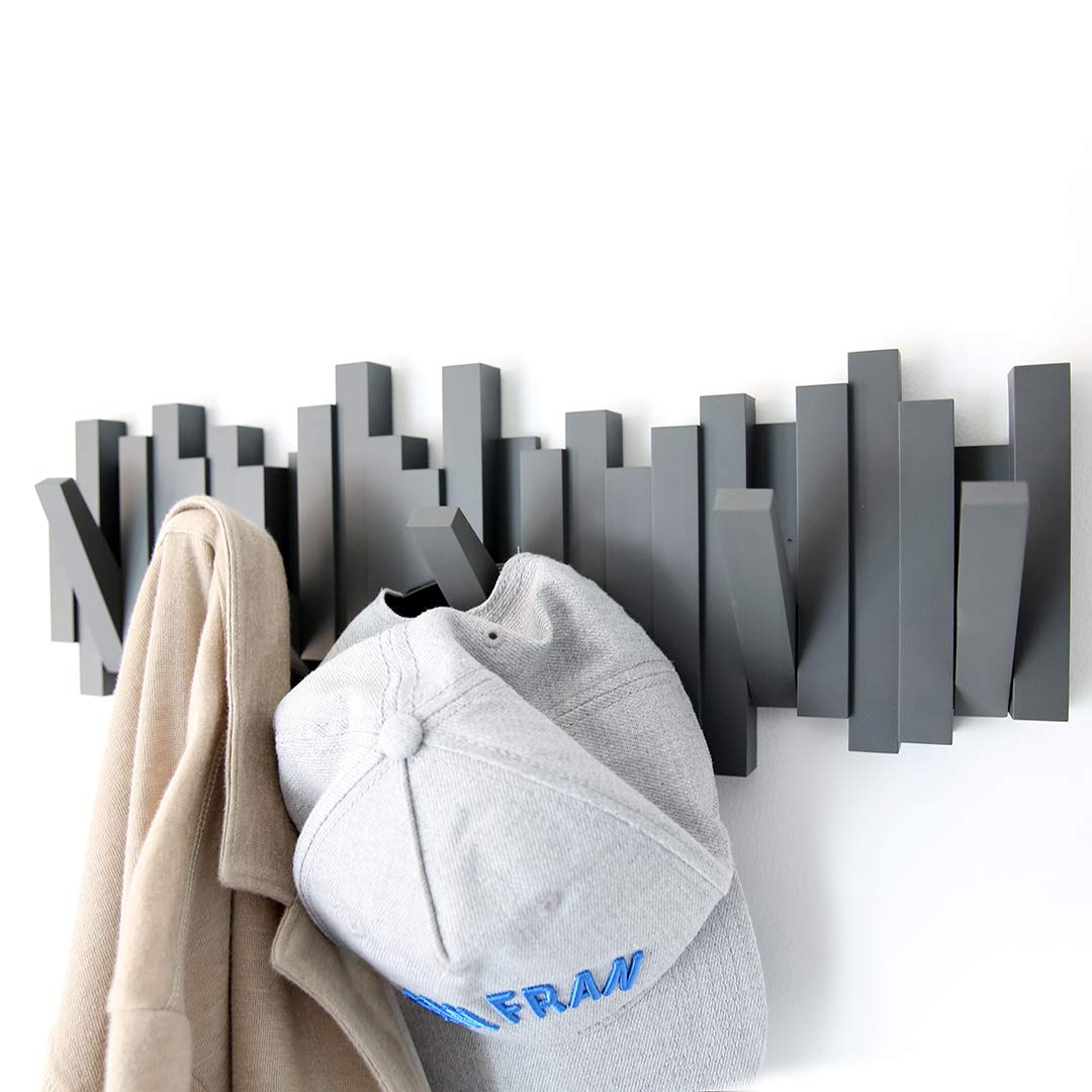 Umbra Stäbchen Garderobenhaken – Moderne und Platzsparende Garderobenleiste mit 5 Beweglichen Haken für Jacken, Mäntel, Schals, Handtaschen und Mehr, Anthrazit