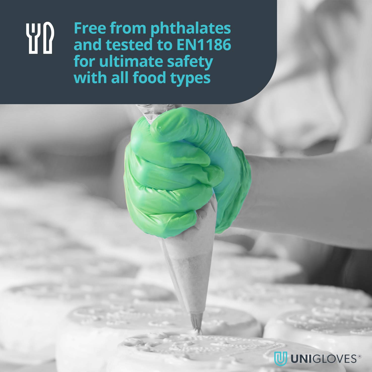 UNIGLOVES - Passgenaue UK PEARL® Grün Einweghandschuhe aus Nitril | Lebensmittelecht, puderfrei & latexfrei | hohe Festigkeit & Haltbarkeit | 100 Stück | Einmalhandschuh L