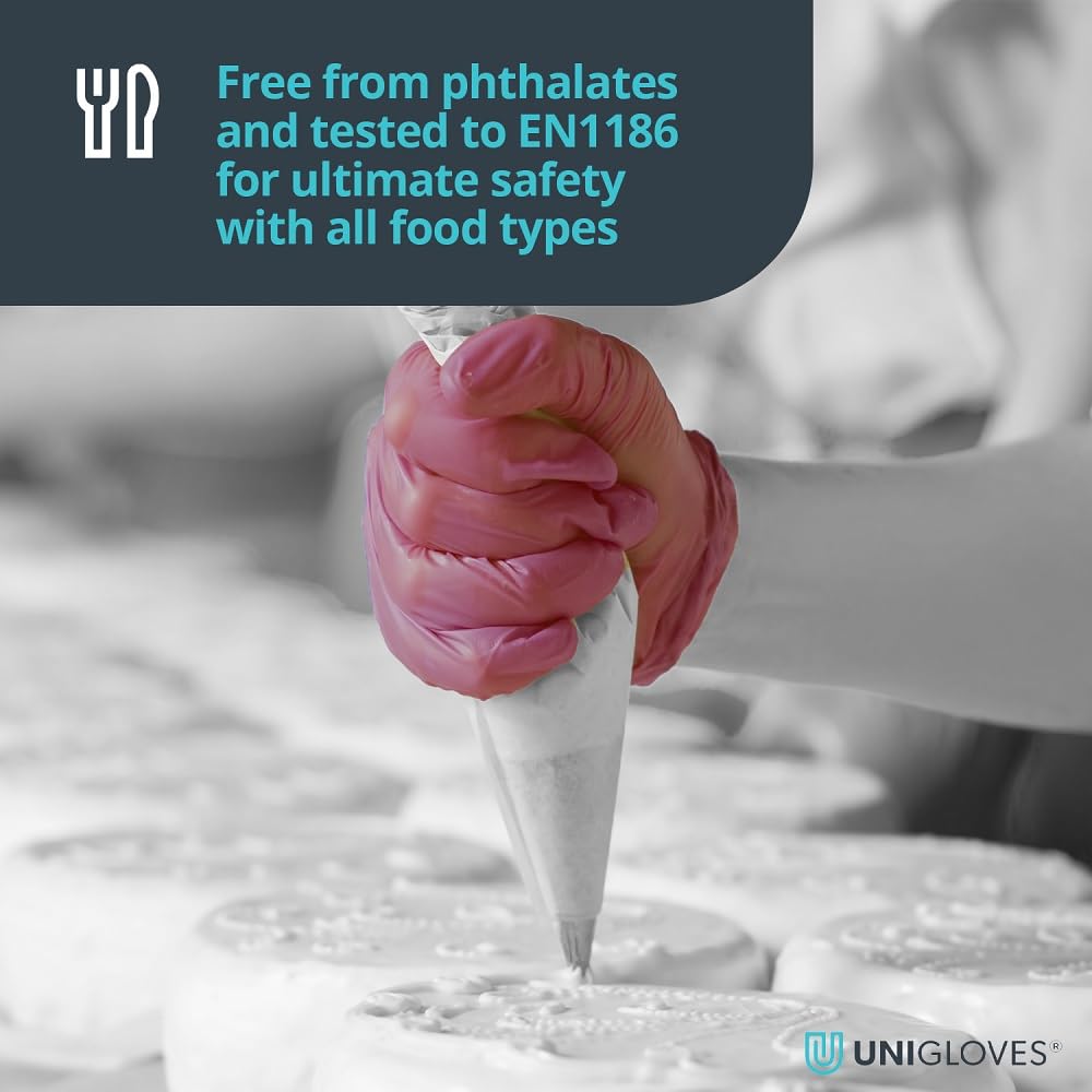 UNIGLOVES Burgundy Pearl Nitril-Untersuchungshandschuhe - vielseitig einsetzbar, puderfreie und latexfreie Einweghandschuhe - Box mit 100 Handschuhen, Burgunderrot, Gross (GP0124)