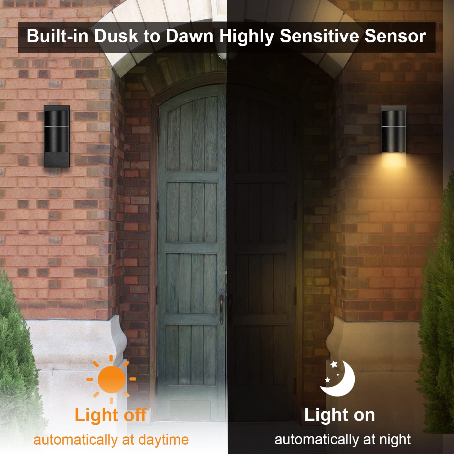 Unikcst LED Wandlampe mit Dämmerungsschalter Aussen IP44 Wandleuchte Schwarz mit Lichtsensor Aussenlampe 230V inkl. 1x 5W GU10 Warmweiss Glühbirne,1 Stück