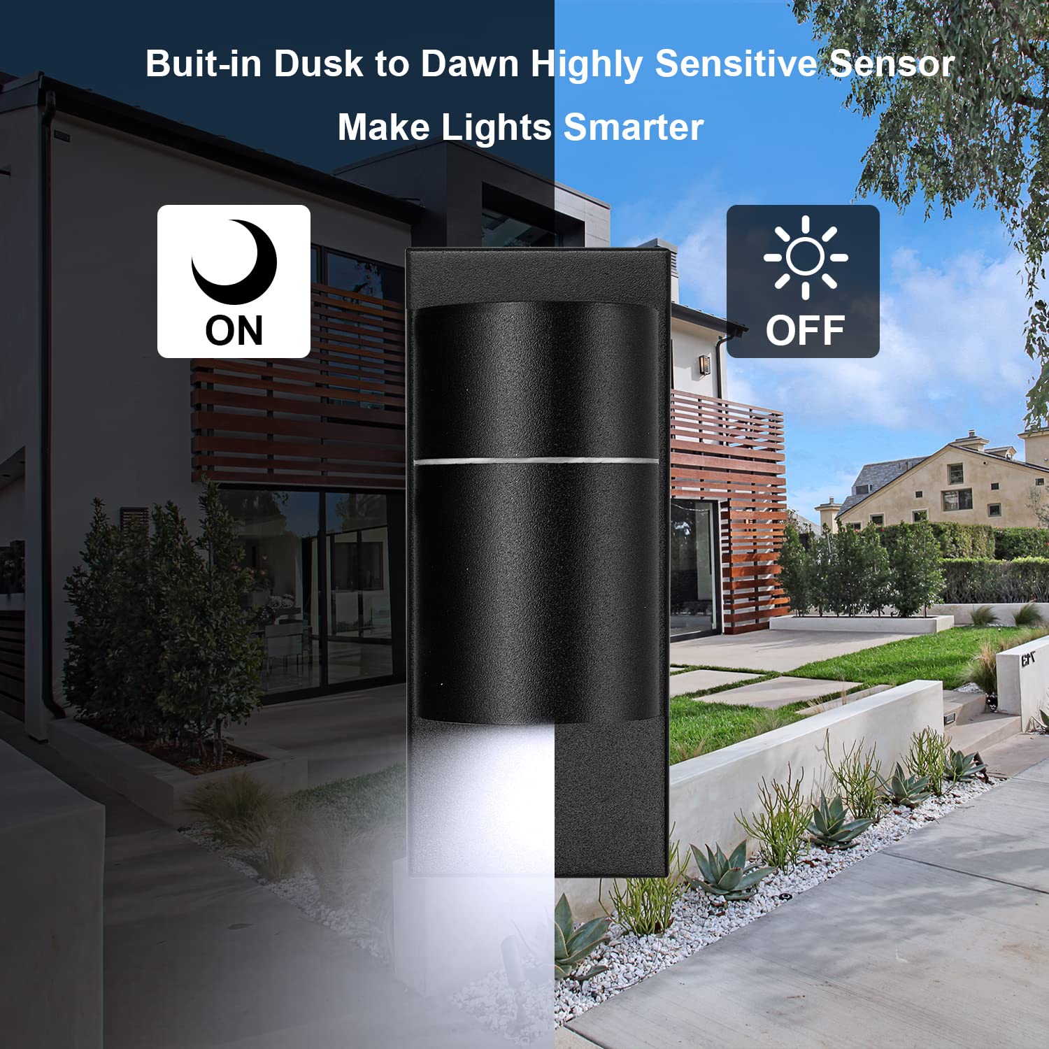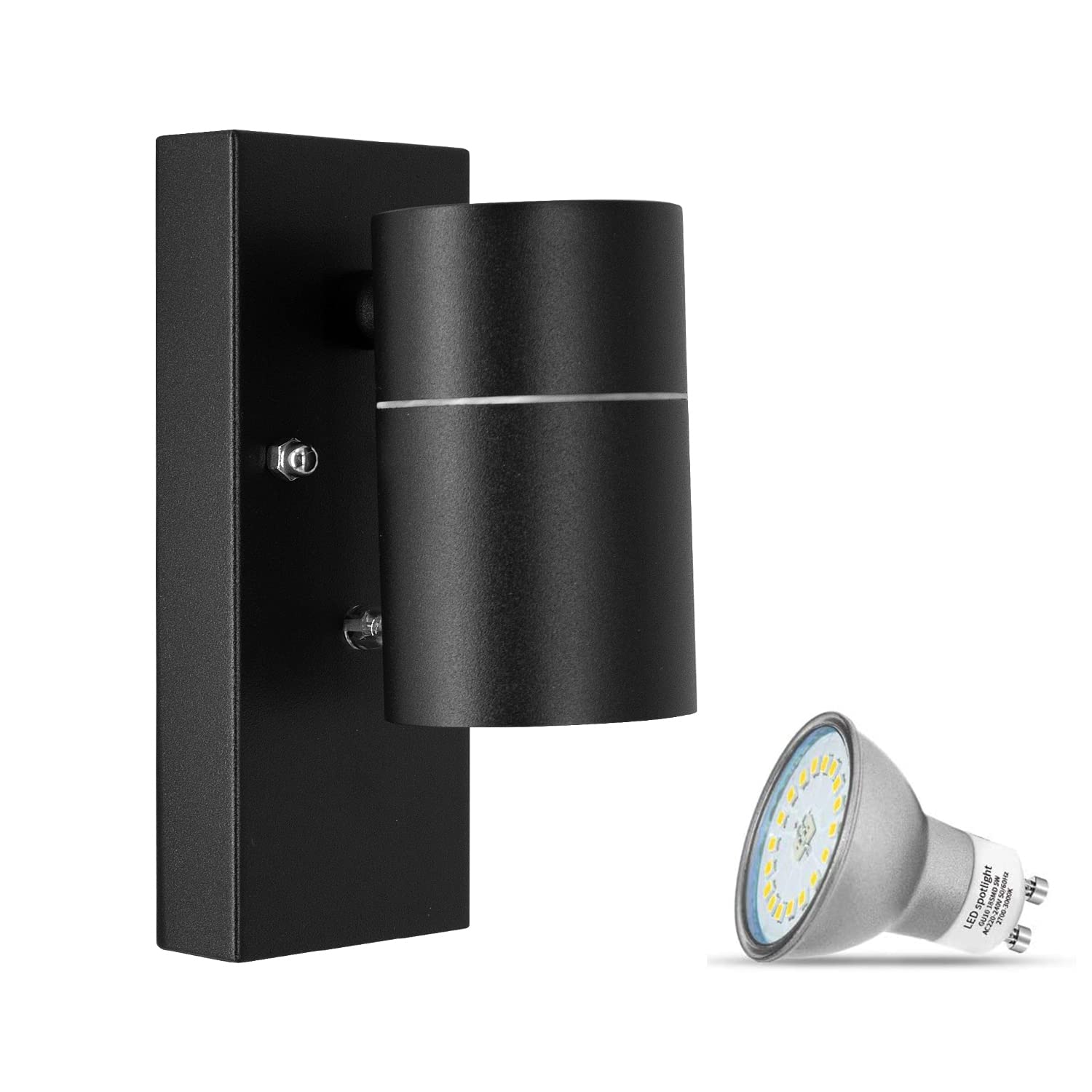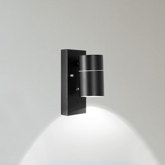 UNIKCST LED Schwarz Matt Aussenleuchte mit Dämmerungsschalter inkl.1x 5W GU10 Kaltweiss LeuchtmittelI. Diese aussenwandleuchte mit schutzklasse IP44 ist für die meisten aussenszenen geeignet,wasserdicht, anti-rost und korrosionsbeständig.Sie können diese wandleuchte auf Terrassen, fluren, gärten, garagen oder anderen aussenbereichen installieren,oder sie können diese wandleuchte auch in innenwand, innenkorridoren usw. installieren.II. Diese schwarz matt Aussenlampe verfügt über einen sensiblen dämmerungssensor.Automatische Erkennung der Helligkeit des Umgebungslichts.Wenn die Dämmerung einsetzt, können die Wandlampen automatisch arbeiten, um Sie die ganze Nacht lang zu beleuchten. Schalten Sie das Licht automatisch aus, wenn die Morgendämmerung kommt.Sie müssen keine manuelle Bedienung vornehmen, einfach und bequem.III. Diese Aussenwandleuchte ist einfach zu installieren, es werden kein spezieller Transformator und Steuerschalter benötigt und die Glühbirne kann auch ausgetauscht werden.Wir liefern Ihnen ein komplettes Installationskit und eine Installationsanleitung im Paket,und bieten Sie 2 Jahr Garantieservice an.Wenn Sie Fragen haben, kontaktieren Sie uns bitte auf Amazon oder senden Sie eine E-Mail :unikcst@outlook.com▶Marke: Unikcst▶Material: Metall und Glas▶Farbe: Schwarz matt▶Steckdose: GU10▶Spannung (V): 230V▶Schutzart: IP44▶Abmessungen (cm): 18x12x8cm▶Produktgrösse (cm): H16.3cm x B6.8cm x T10.9cm▶Glühbirne: Inklusive 1x 5W GU10 LED Kaltweiss▶Leistung (W): 5W(Max 35W)▶Lumen (LM): 500lm▶Farbtemperatur (K): 6000K▶Farbwiedergabeindex: 80Ra▶Dimmbar: Nicht dimmbar▶Garantie: 24 Monate▶Durchschnittliche Lebensdauer (H): 30000 Stunden