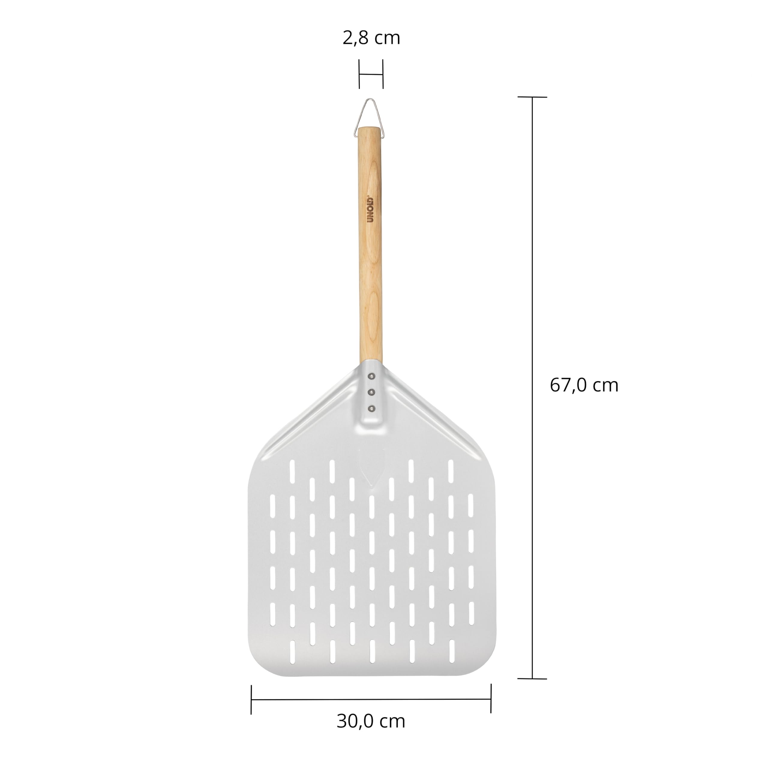 Unold Pizzaschieber 6881620 | Pizzaschaufel aus Aluminium mit Griff aus Buchenholz perfekt Pizzaofen Luigi 68816 | Grifflänge 35cm, Schaufelgrösse 40 x 30cm