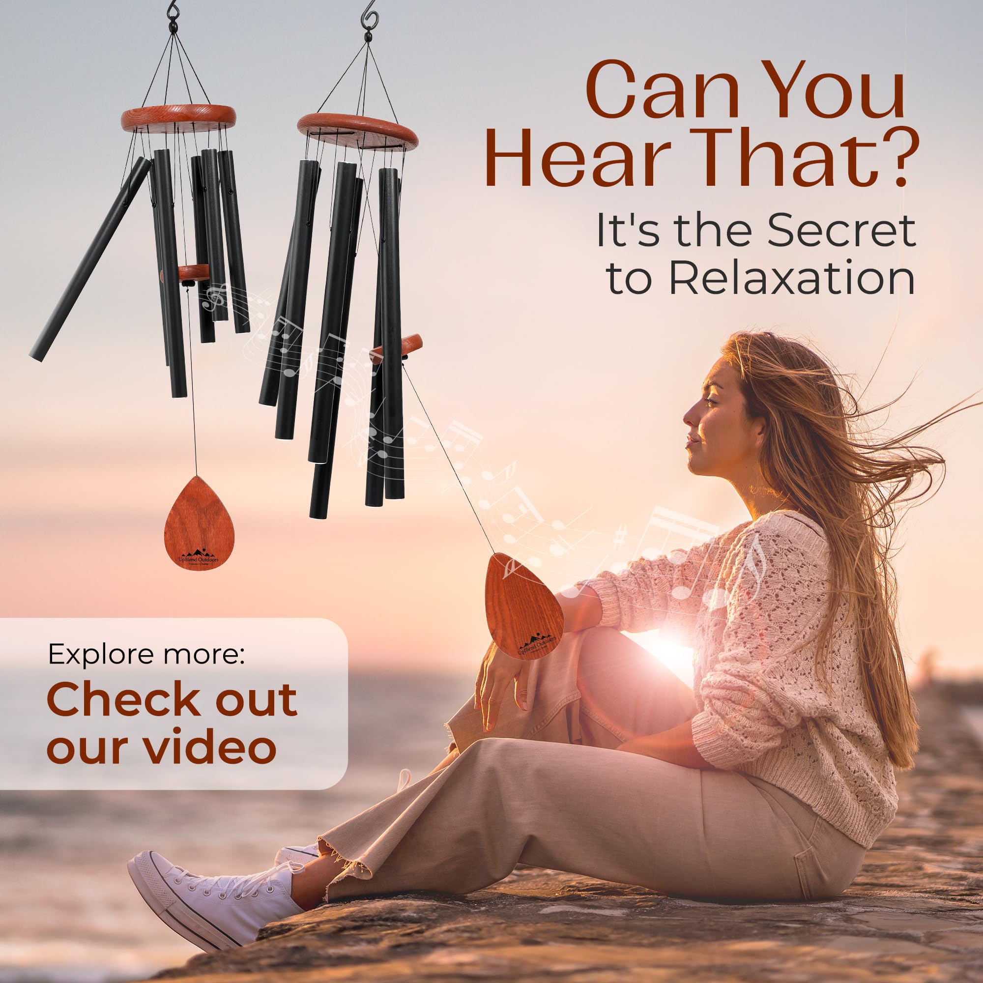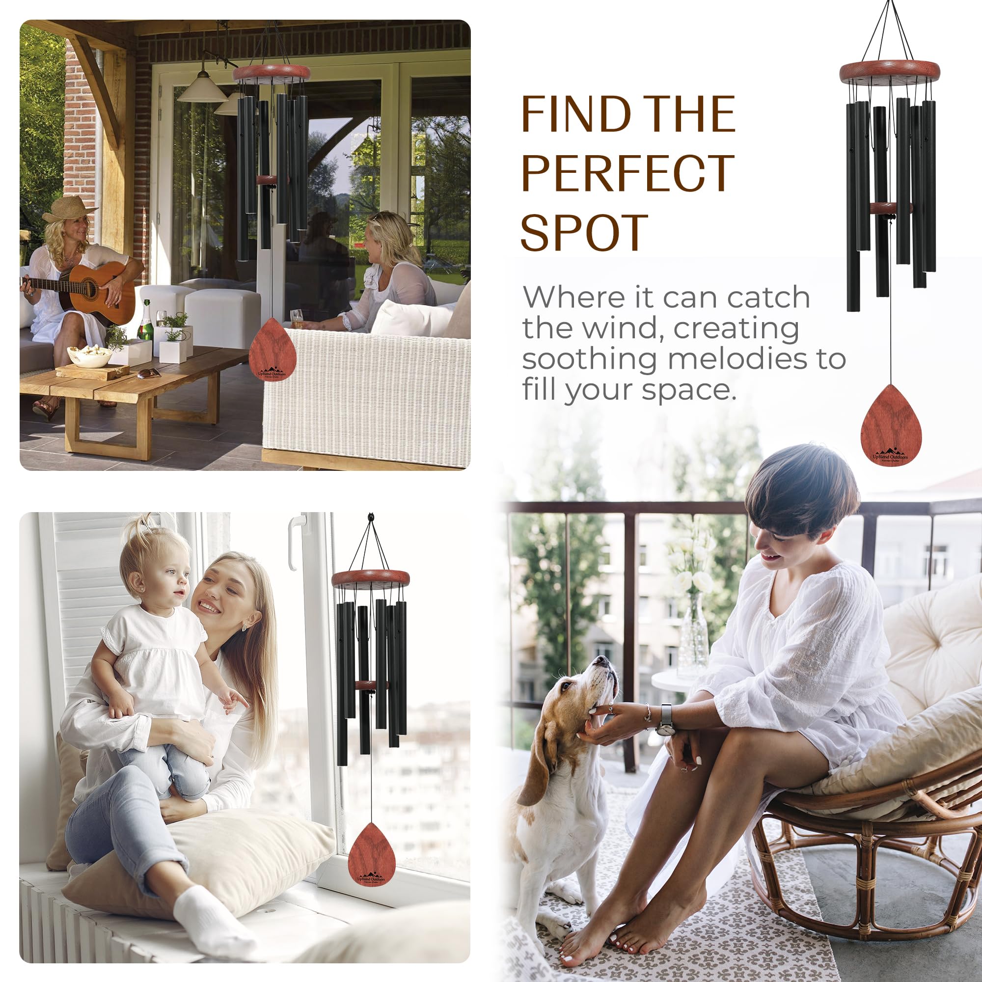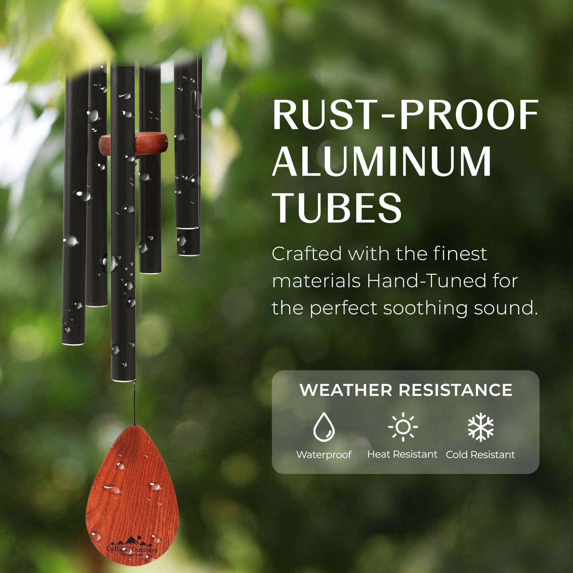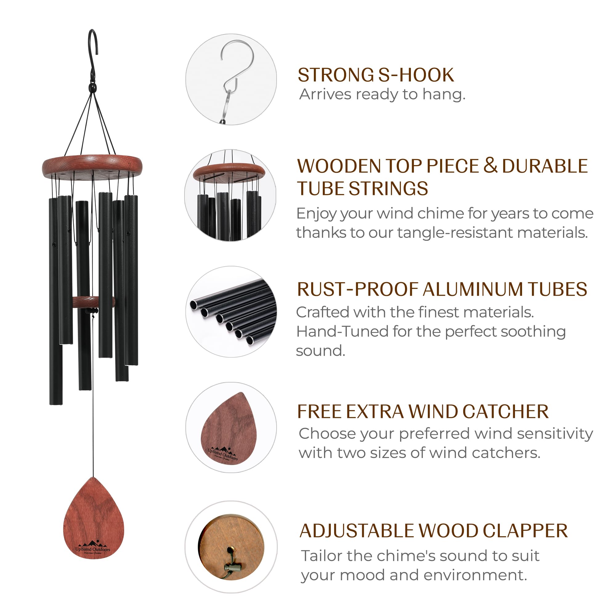 UpBlend Outdoors Windspiel – Das Klassische Schwarze Havasu ist 71,1 cm Gesamtlänge – handgetuntes Windspiel Geschenk für Garten, Outdoor-Heimdekoration