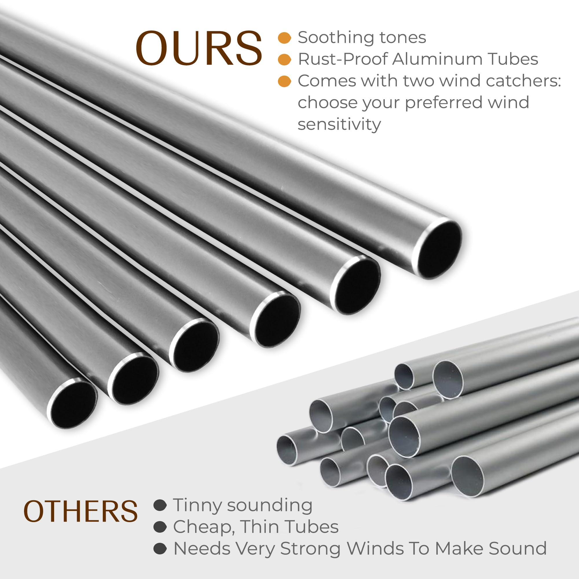 ✔ Careful representation of chime size reflected in images at top of page.